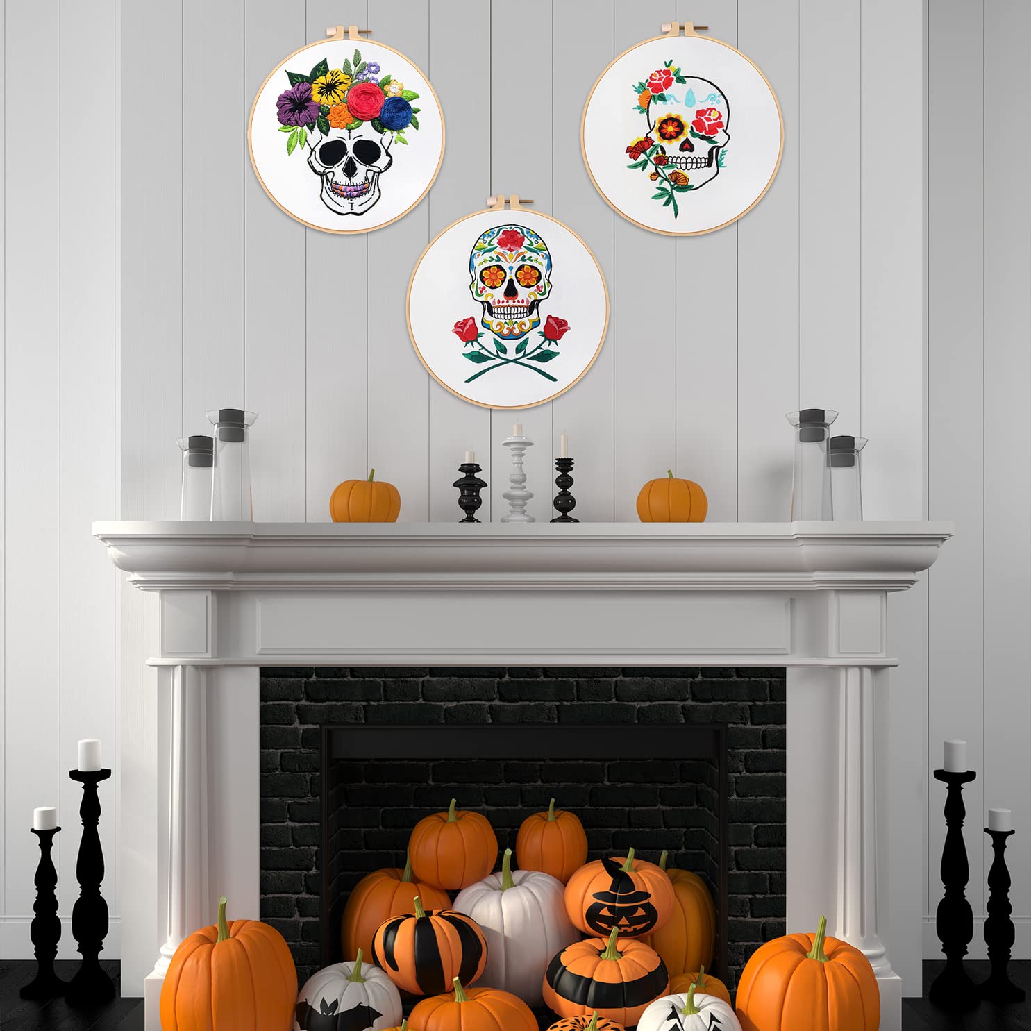 Nuberlic 3 Pack Halloween Skull Embroidery Kit for Adults Beginner Cross Stitch Kits for Starters with Skull Patterns Include 3 Hoop Cloth Thread Needles and Instructions