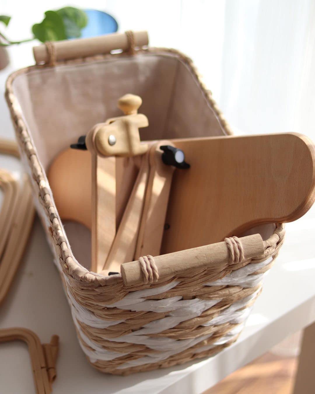 Nurge Adjustable Embroidery Table Stand, Cross Stitch Hoop Stand, Embroidery Hoop Holder. Hand Polished Natural Wood (190-4 Embroidery Stand)