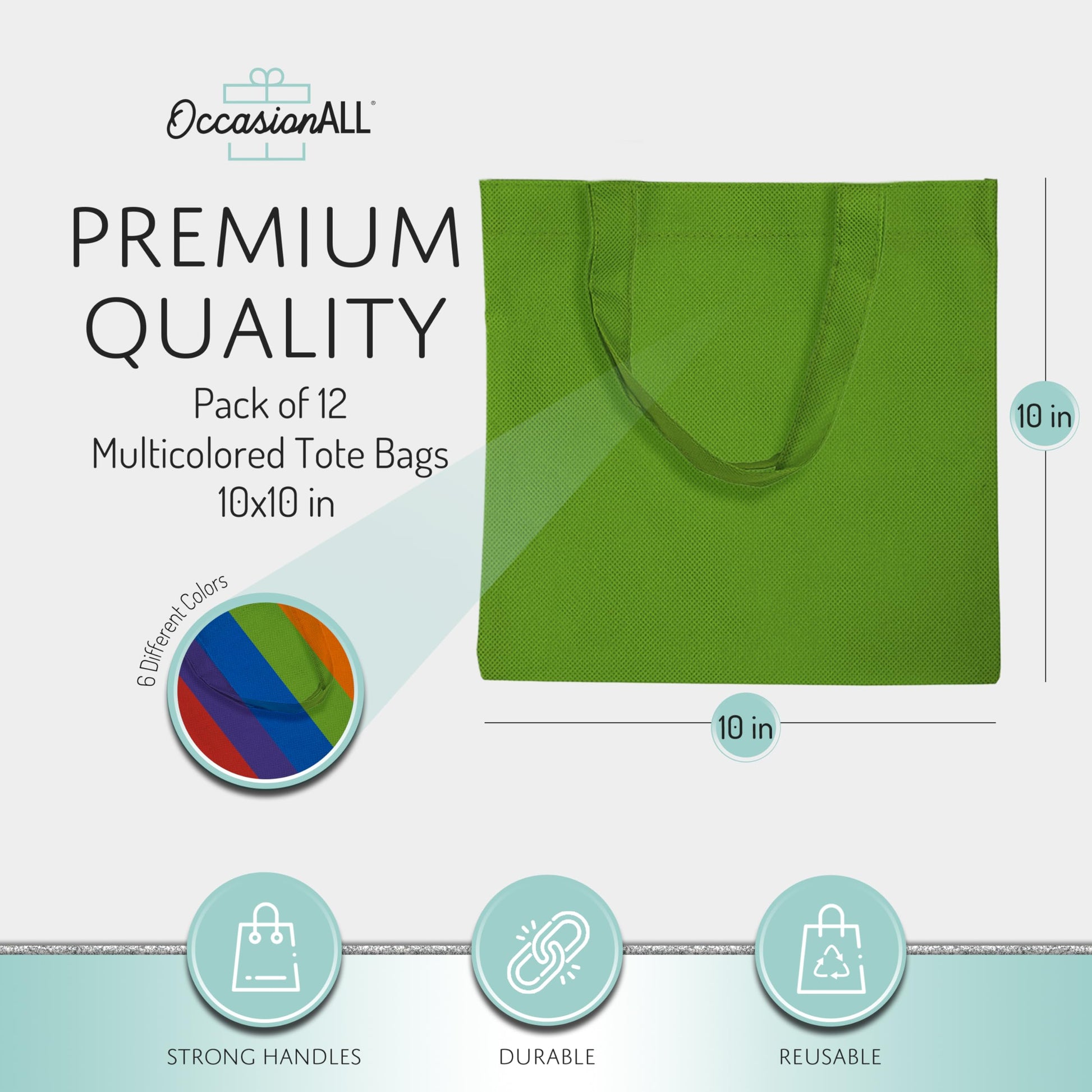 Large Reusable Fabric Gift Bags with Handles for Grocery, Christmas Tote, Birthdays, Goodies, Party Favors, Shopping, Bulk, 10x10, 12 Pack