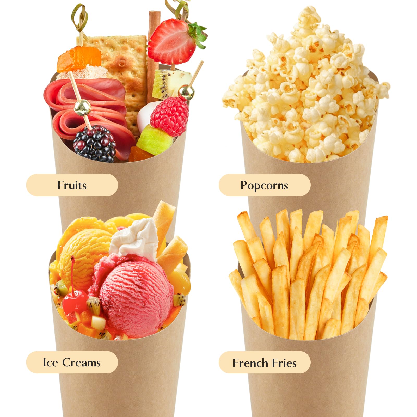 - Oil Resistant Lining: Each kraft french fry holder is covered with food-safe polyethylene oil-resistant lining, which keeps away from any greasy mess or embarrassing stains while enjoying delicious food