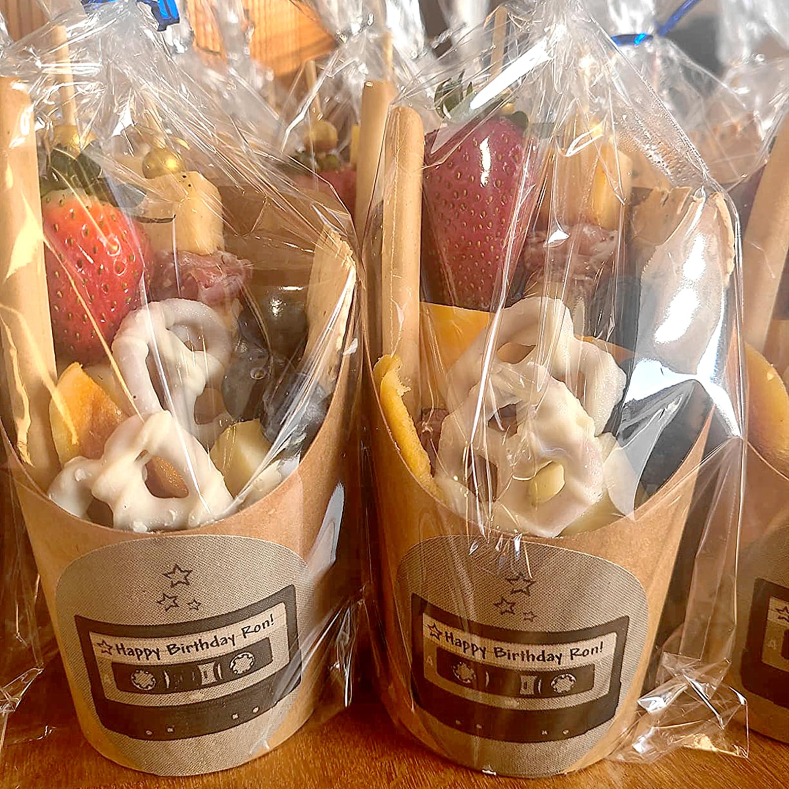 - Pack of 150: Value package includes 50pcs 14 oz charcuterie cups, 50pcs cellophane bags and 50pcs twist ties, meeting your various packing needs; Each solo cup measures 2.4" in diameter and 4.5" in height