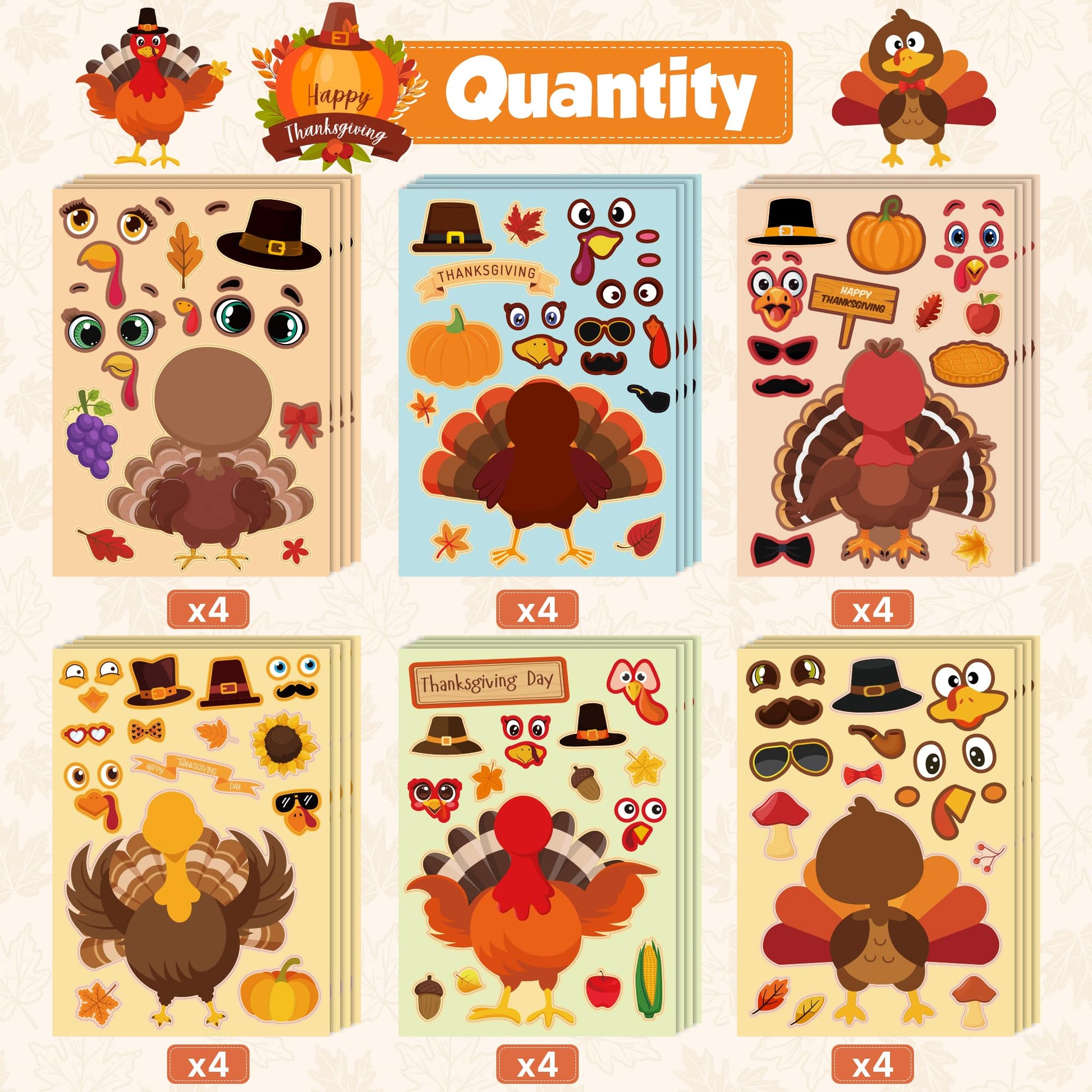 OHOME Thanksgiving Crafts for Kids - DIY Turkey Stickers,Kids Thanksgiving Games Gifts Activities Party Favors Supplies | Make a Turkey Friendsgiving Decorations (24 Sheets)