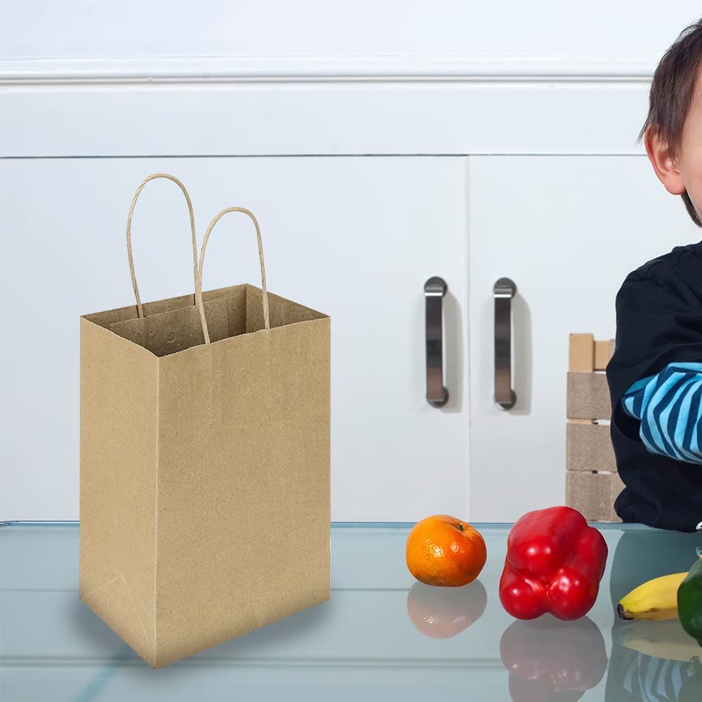 Oikss 50 Pack 5.25x3.25x8.25 Inch Small Gift Bags with Handles Bulk, Kraft Birthday Party Favors Grocery Retail Shopping Business Goody Bags, Craft Plain Natural Paper Bags Cub Sacks (Brown 50 Count)
