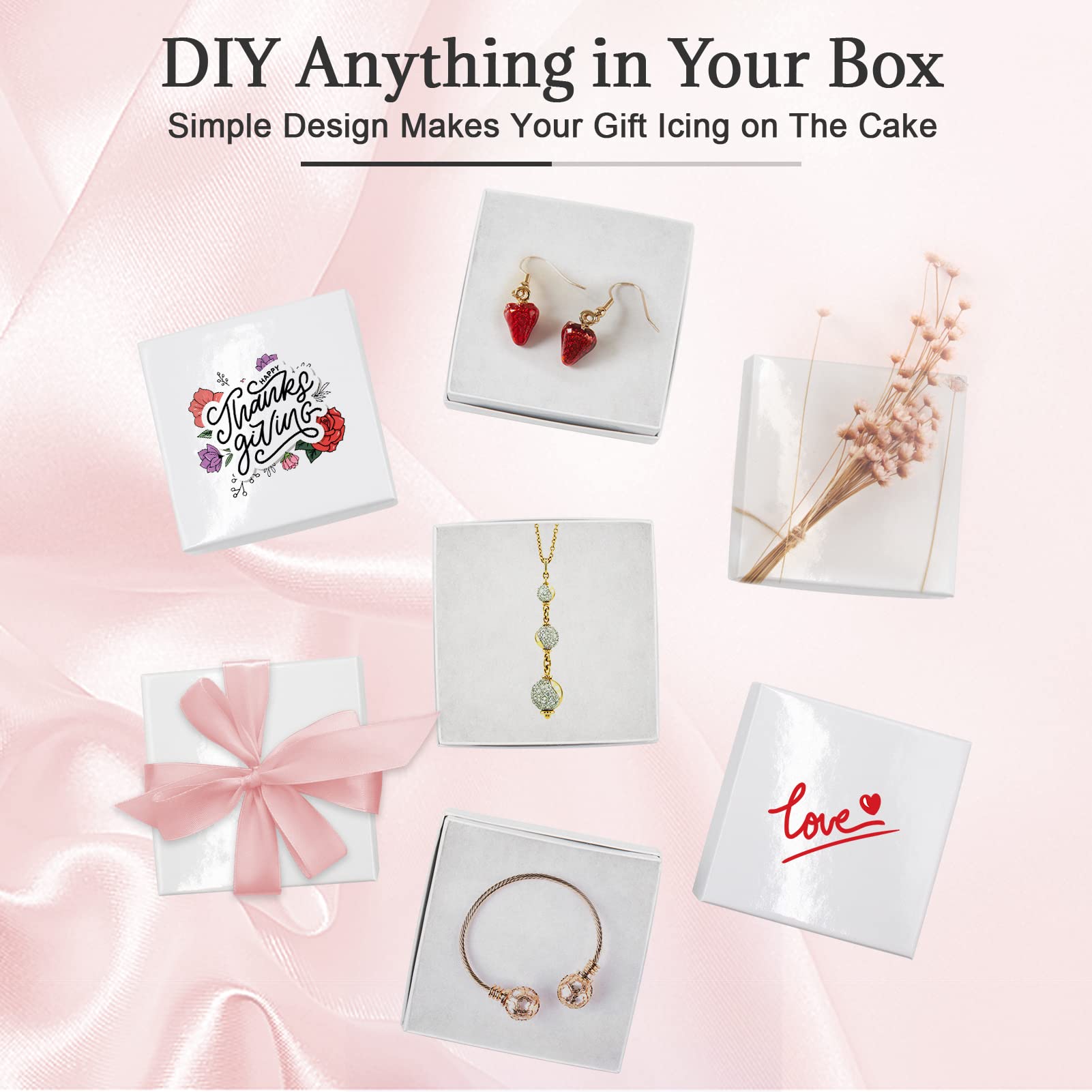 - Multifunctional jewelry box: 3.5x3.5x1 inch White jewelry box. These jewelry gift boxes can be used for rings, necklaces, bracelets, earrings, pendants, brooches and so on.