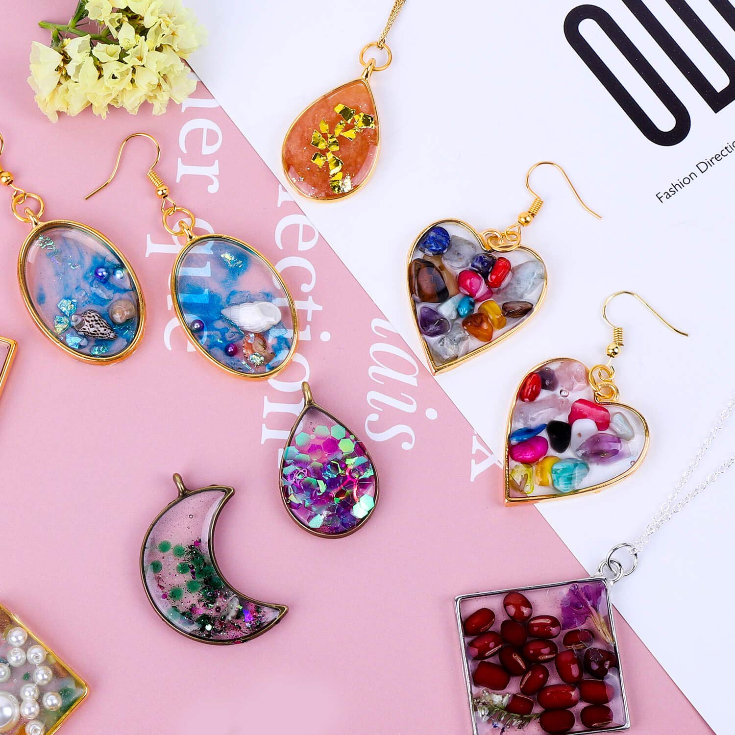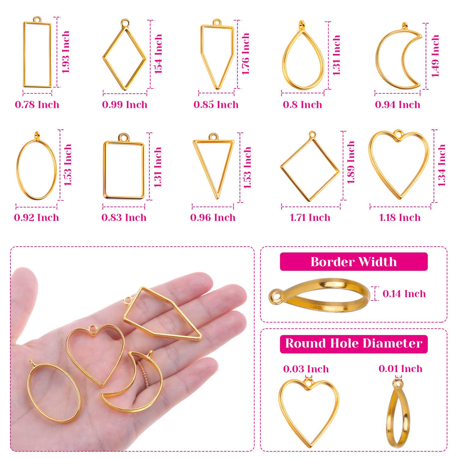 - Multiple Styles Bezel Pendant Blanks: These resin molds for jewelry are available in 10 different lovely geometric shapes and 3 popular colors, the assortment of shapes and colors provide you a good selection to achieve a variety of creative possibilities