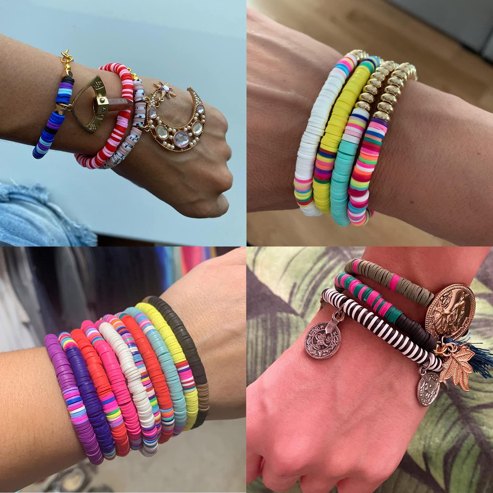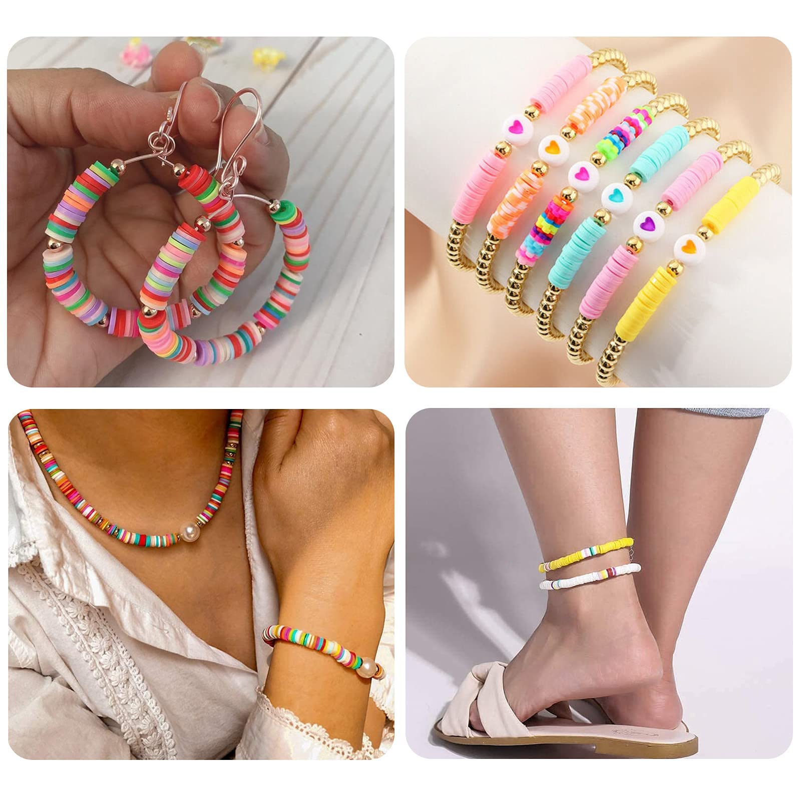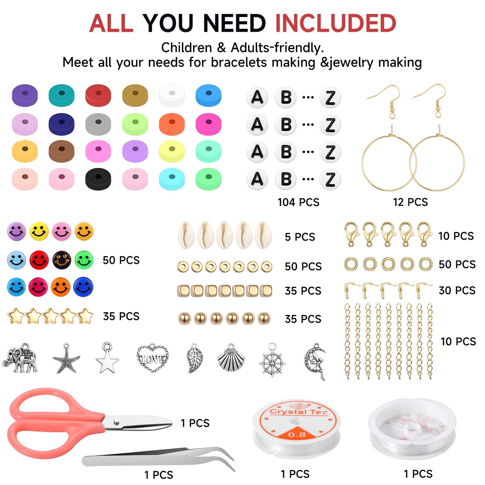 OPPRYN 6000 Pcs 24 Colors 6mm Polymer Clay Beads,Bracelet Making Kit,Preppy Flat Spacer Heishi Beads for Jewelry Making with Smiley Face Beads Letter Beads Pendant Charms kit,Gifts/DIY