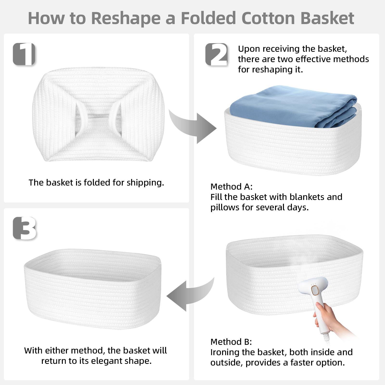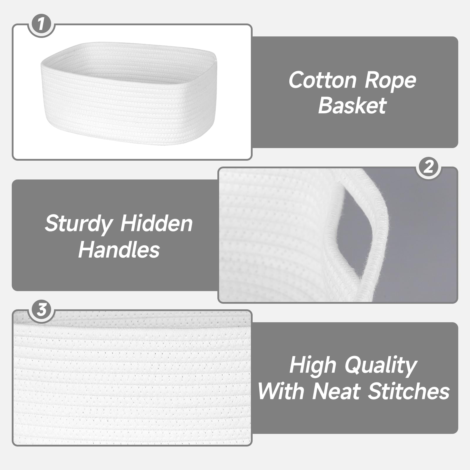 - High Quality: The small baskets are crafted from cotton ropes, they can keep shape and stand up on their own. The quality workmanship ensures there are no sharp edges that could scratch walls or floors. The woven rope will not separate, fray, or fall apart easily, guaranteeing that these baskets will last for years of continuous use.