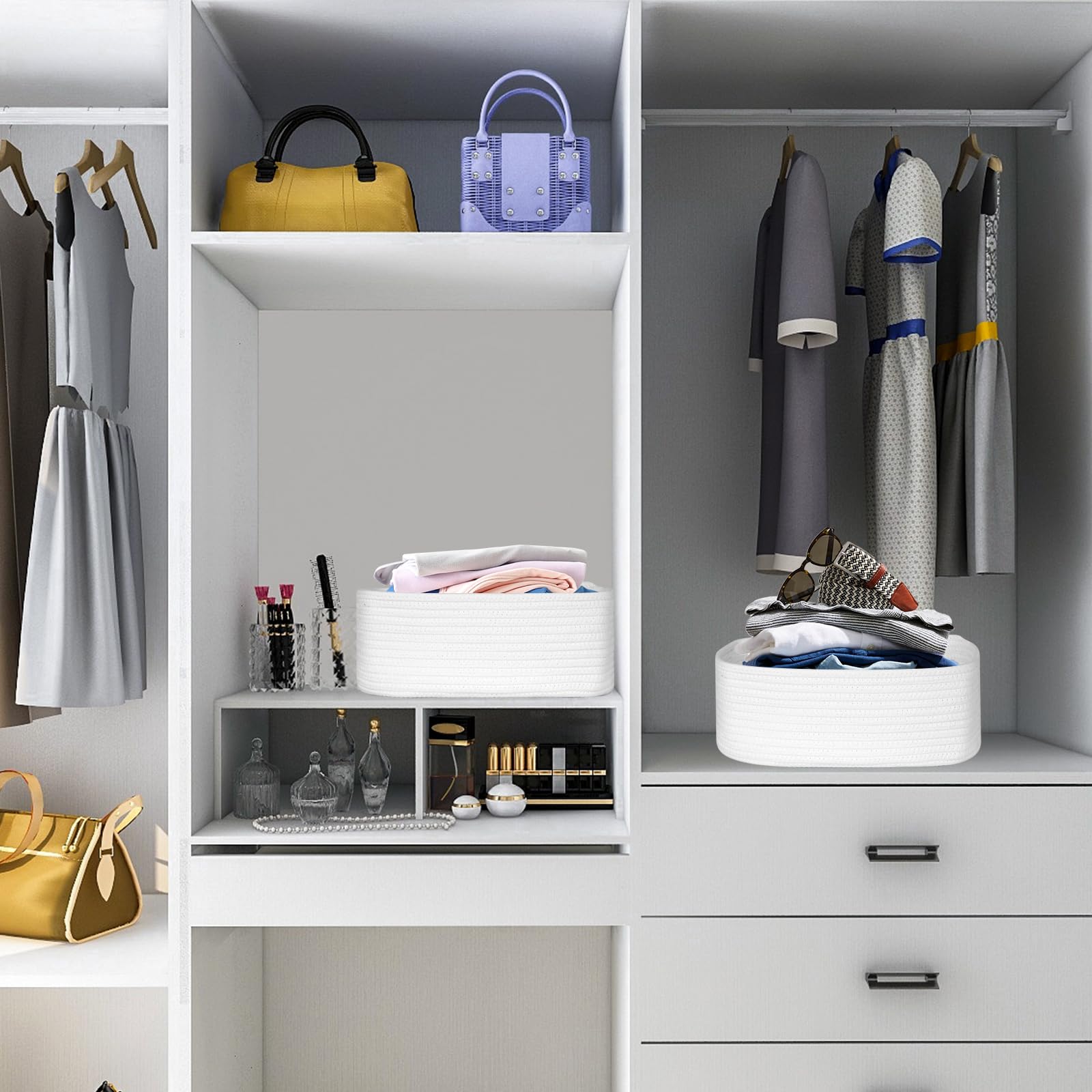 ORGMASTER Small Rope Basket 13" x 8.5" x 5.1", Woven Storage Baskets Closet Organizer Bins, Shelf Boxes for Organizing Home Office, Cat Dog Toy Box, Empty Gift Basket 2 Pack, White