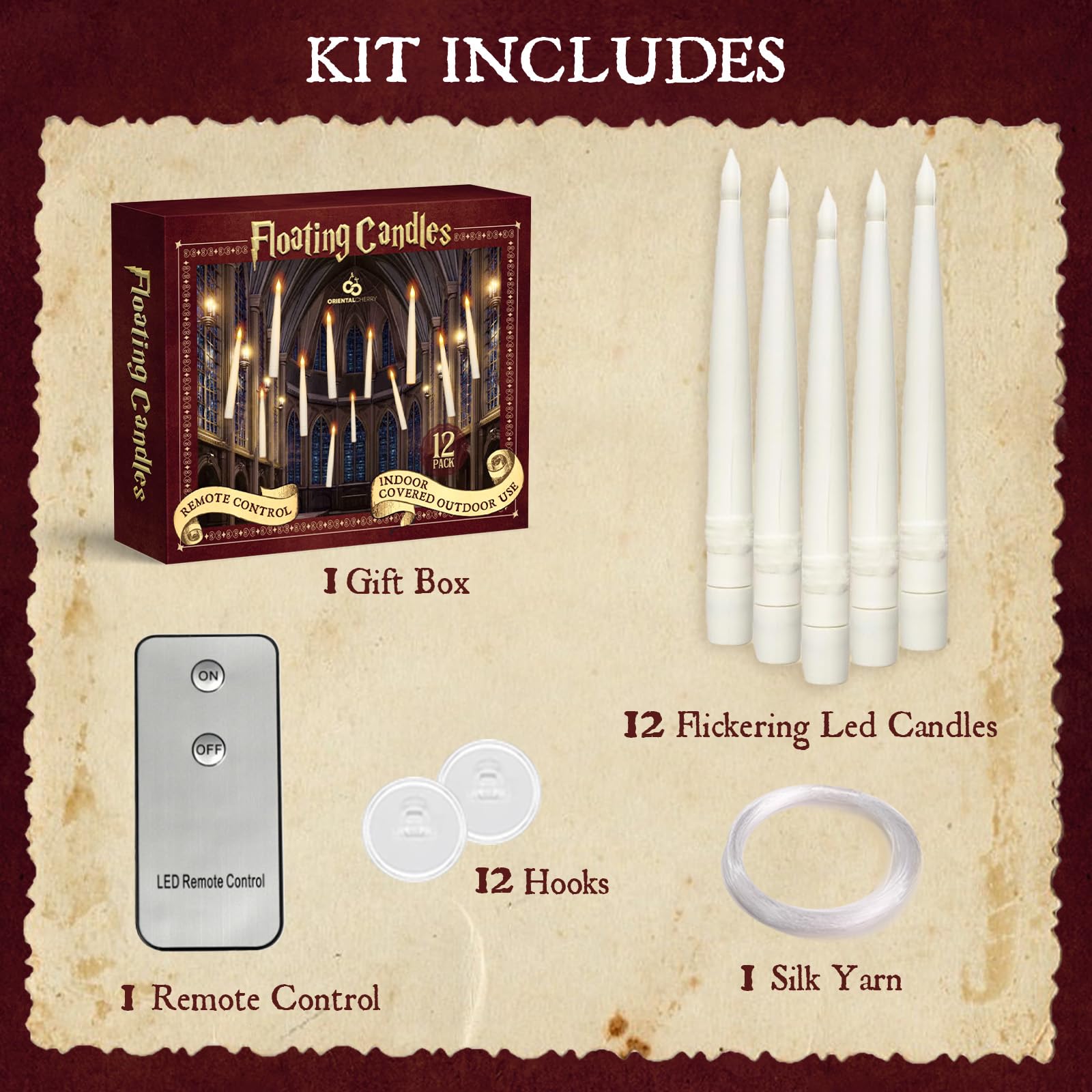 Halloween Decorations - Floating LED Candles with Remote Control -12Pcs Magic Witch Wizard Christmas Decor for Indoor Home Room Classroom Bedroom Birthday Party (with Common Remote)