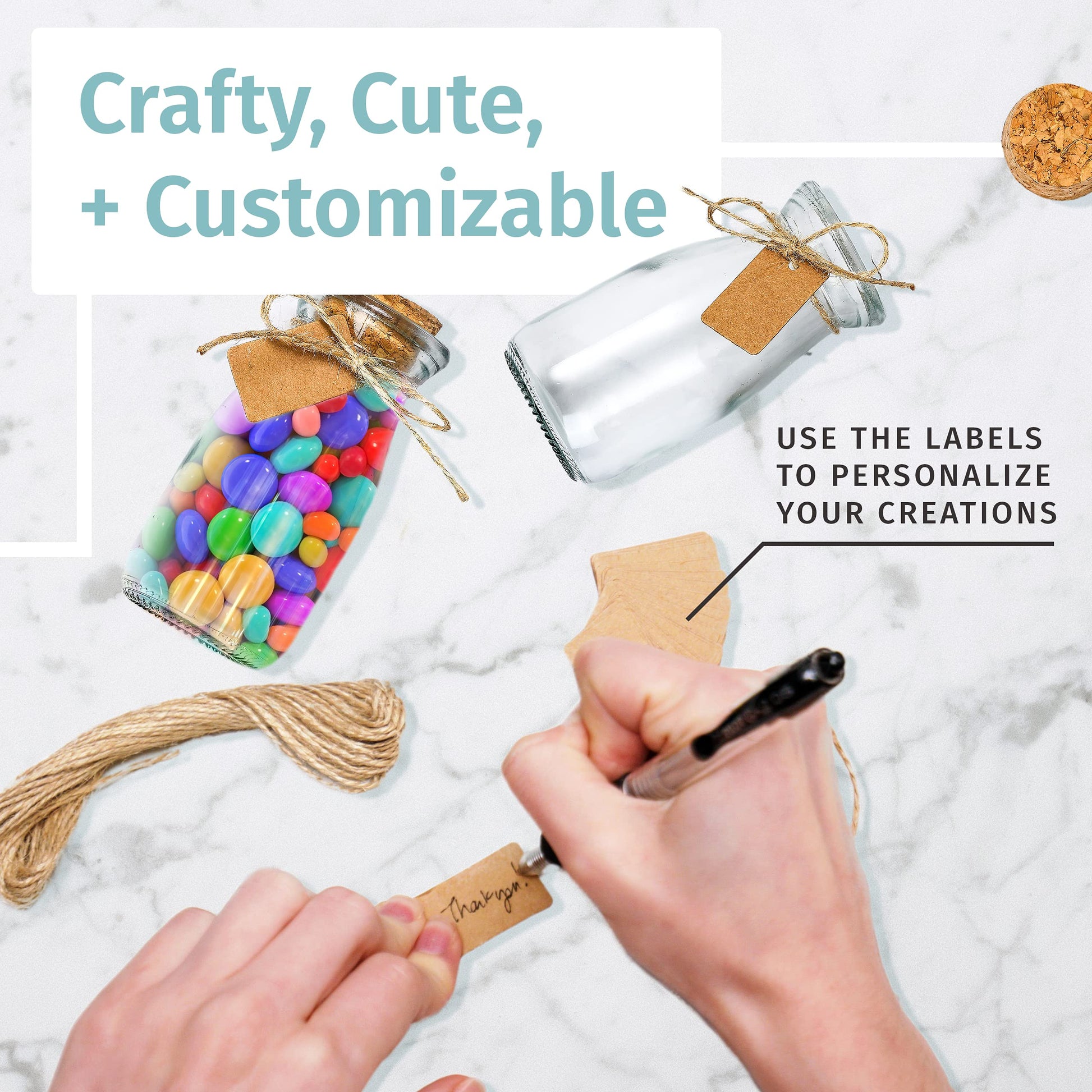 - Bonus: Our corked mini jars include 20 brown paper labels and a big bundle of string, so you can add your own personalized touch to every bottle!