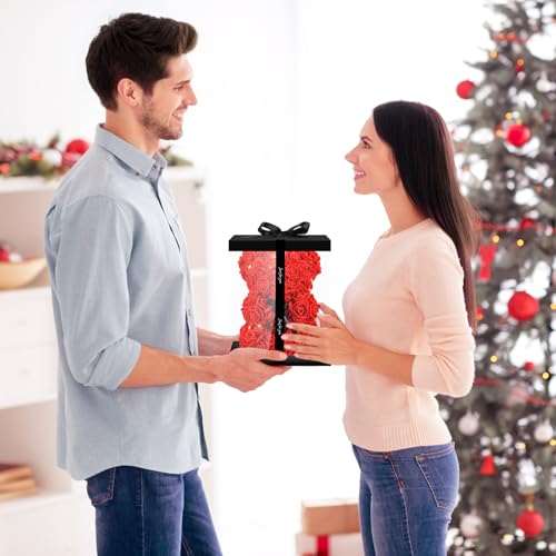 - [Cute and Handmade] Cute bear shape design, handmade from nearly 200 artificial roses flowers and placed in a highly transparent gift box to display the rose bear all around. Note: The protective film on the gift box can be removed for better lighting effects