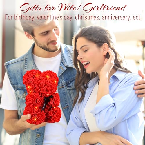 - [Exquisite Creative Gifts] This 9 inches cute rose bear with led lights and greeting card (self-fillable text) comes in an beautiful gift box, it's a great mother's day, christmas, valentine's day, anniversary, graduation, teacher appreciation, birthday gifts for women