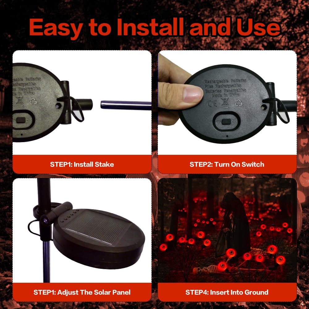 - 【Scary Eyeballs Solar Halloween Party Lights Outdoor Decor】Eye Ball shaped swaying lights Orange which enables you to enjoy your nights with magic light and fun for a perfect outdoor dinner or Halloween party. The eyeballs are brighter and swaying in the darkness and they look great. Light up well and fit perfectly on Hallowen decorations.