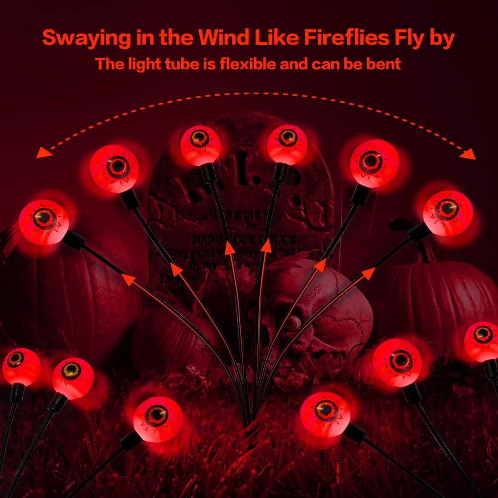 - 【PERFECT HALLOWEEN PARTY FAVORS】Our Halloween lights have 2packs with 12 LED Scary Eyeball Swaying lights. It will cover wider when you dress up your home or party. A great addition for Halloween decorations outdoor indoor. Give scary Halloween party supplies to your family, neighbors and friends, share festive laughter, let them enjoy these fun Halloween decorations for home outside indoor.
