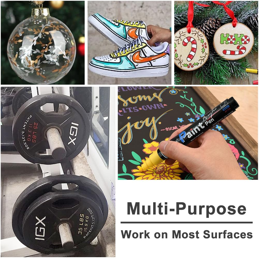 - High Quality: Durable medium round nib allows smooth and precise application. These acrylic paint pens are perfect for drawing, painting and coloring in arts and crafts, DIY projects, scrapbooks, gift card marking, journals, calendar, planners, coloring books, tires and more