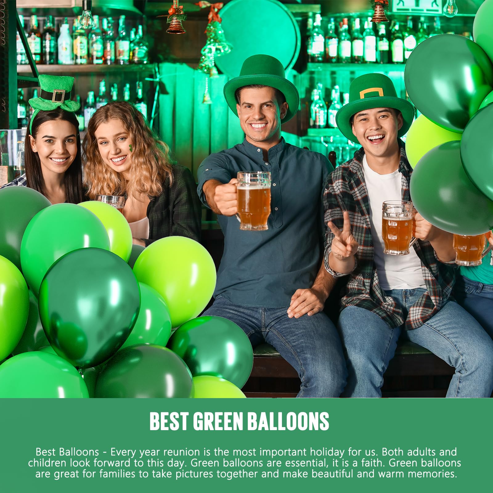 - PREMIUM BALLOONS - The balloon kit includes 100 pcs 12-inch balloons in metallic and latex green,with 2 roll 32ft green ribbon