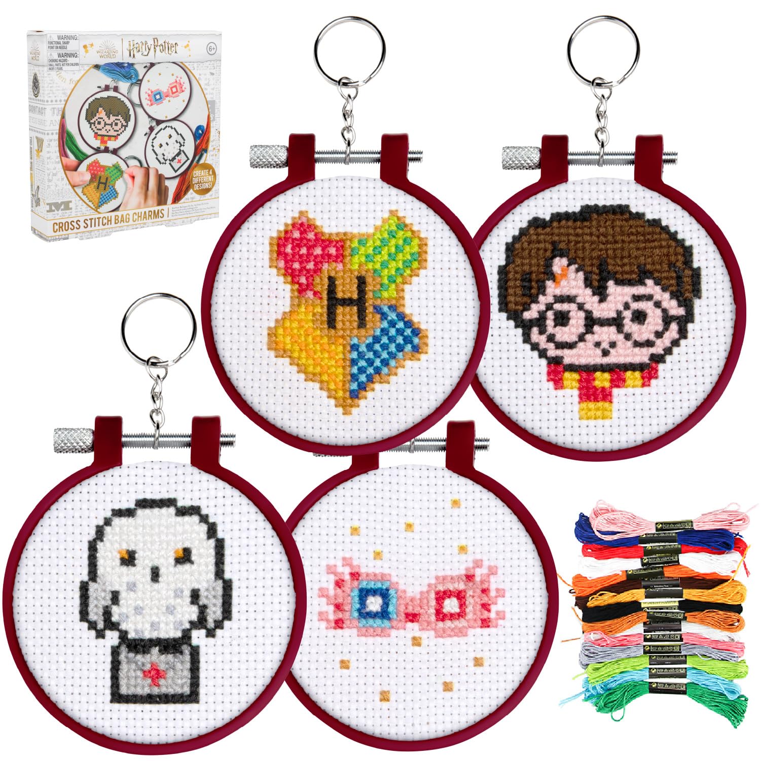 - FOUR DESIGNS: Dive into the magical realm of the wizarding world with the Harry Potter cross-stitch kit, providing all you need to create four different enchanting designs. Perfect for both beginners and experienced craft enthusiasts. Add the completed pieces to your keychain or collection of bag charms.