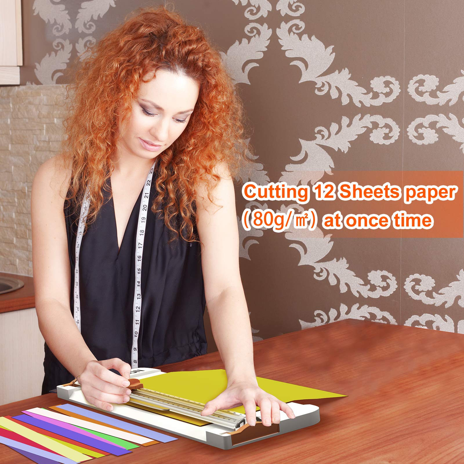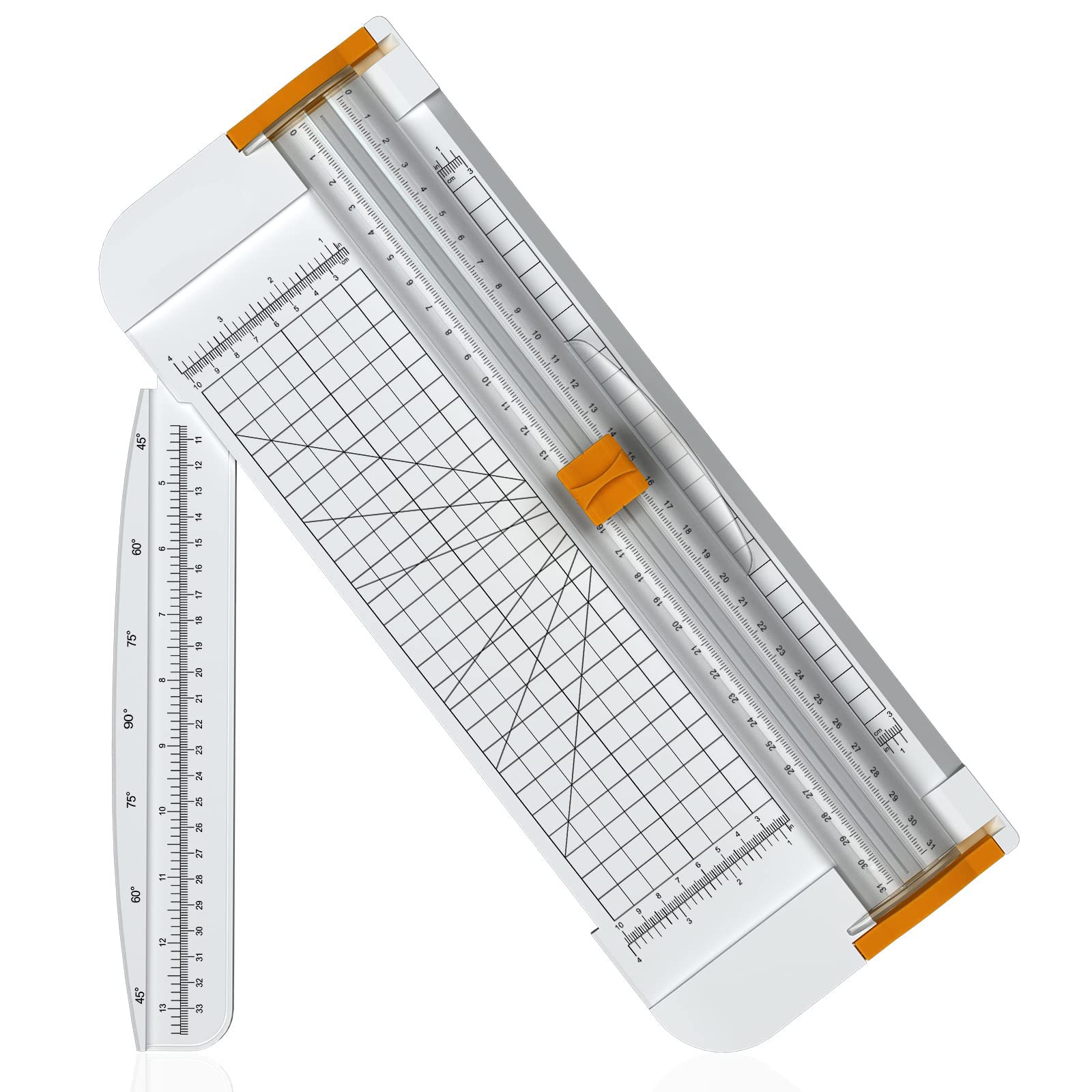 Paper Cutter 12 Inch Titanium Paper Trimmer Scrapbooking Tool with Automatic Security Safeguard and Side Ruler for A4, Craft Paper, Label, Photo and Cardstock White