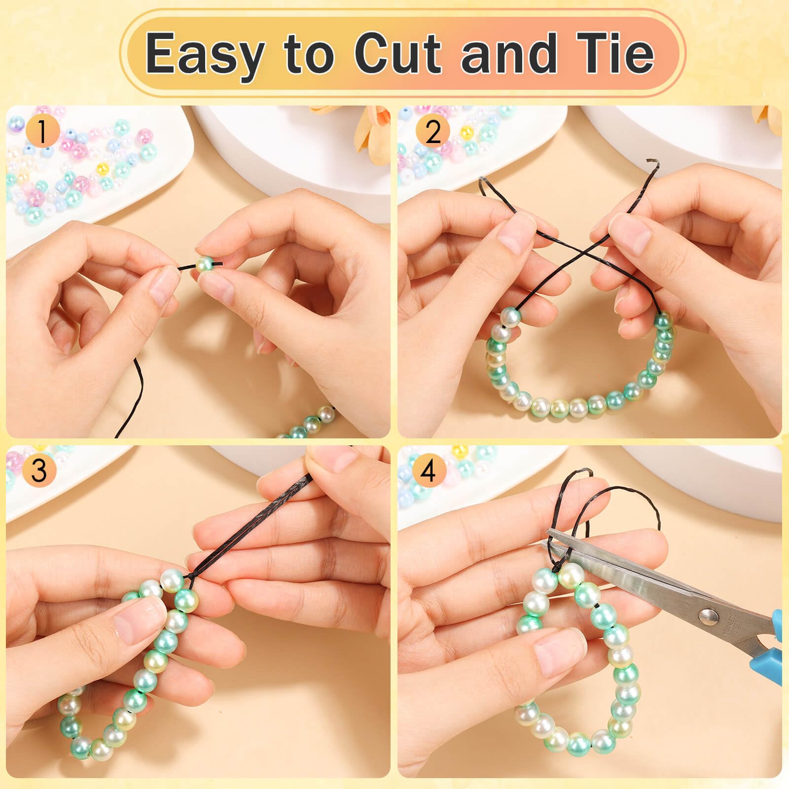 - EASY TO TIE KNOTS: The elastic thread for bracelets is very flexible and can be threaded through both small and large beads, and is suitable for beads of all materials. The bead string is very simple to tie a knot to secure your bracelets and easily hide the knot among the beads