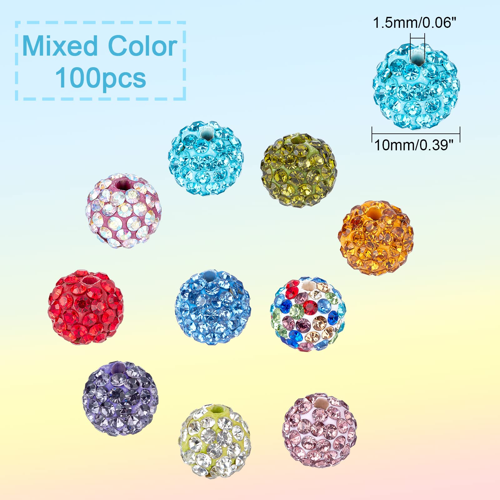 PH PandaHall 10mm Crystal Beads Rhinestones Beads 100pcs Pave Disco Ball Beads Mixed Color Polymer Clay Diamond Round Beads for Summer Bling Pen Bracelet Necklace Earring Jewelry Making Christmas