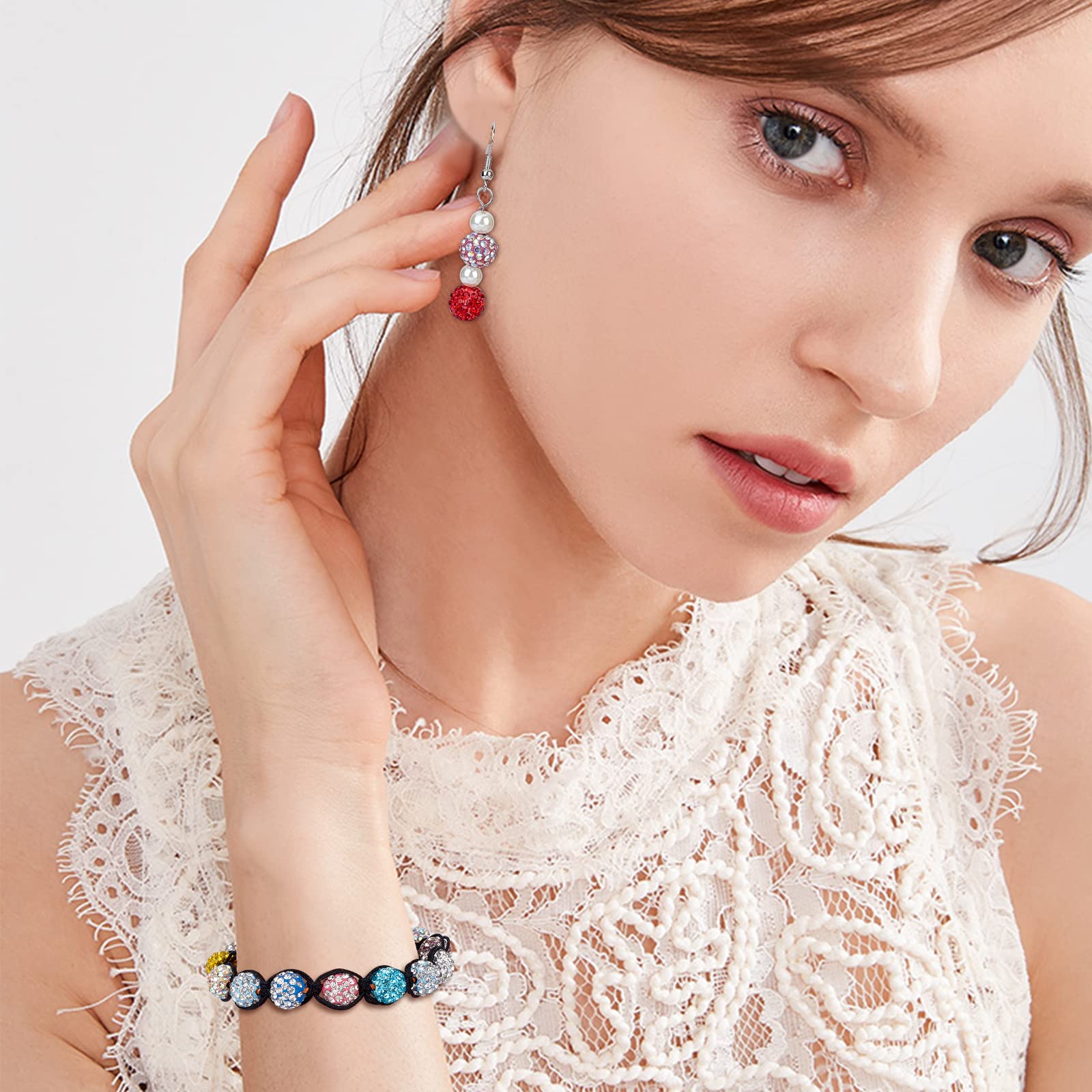 - Quantity: about 100pcs rhinestone clay beads in bright color, These pave disco ball clay beads contain beautiful color, making the whole bead look very bright, eye-catching and charming. The colorful designs within polymer clay beads make them a popular choice for festive and whimsical jewelry.