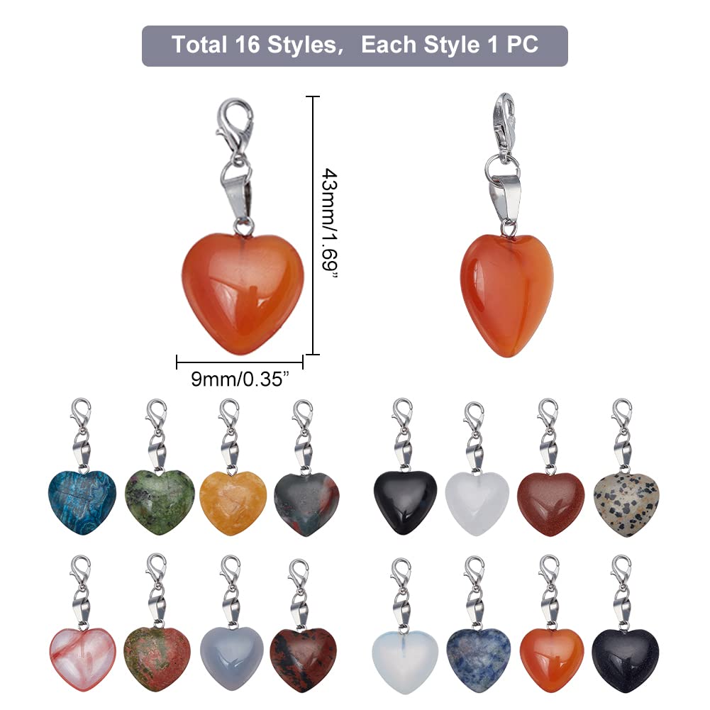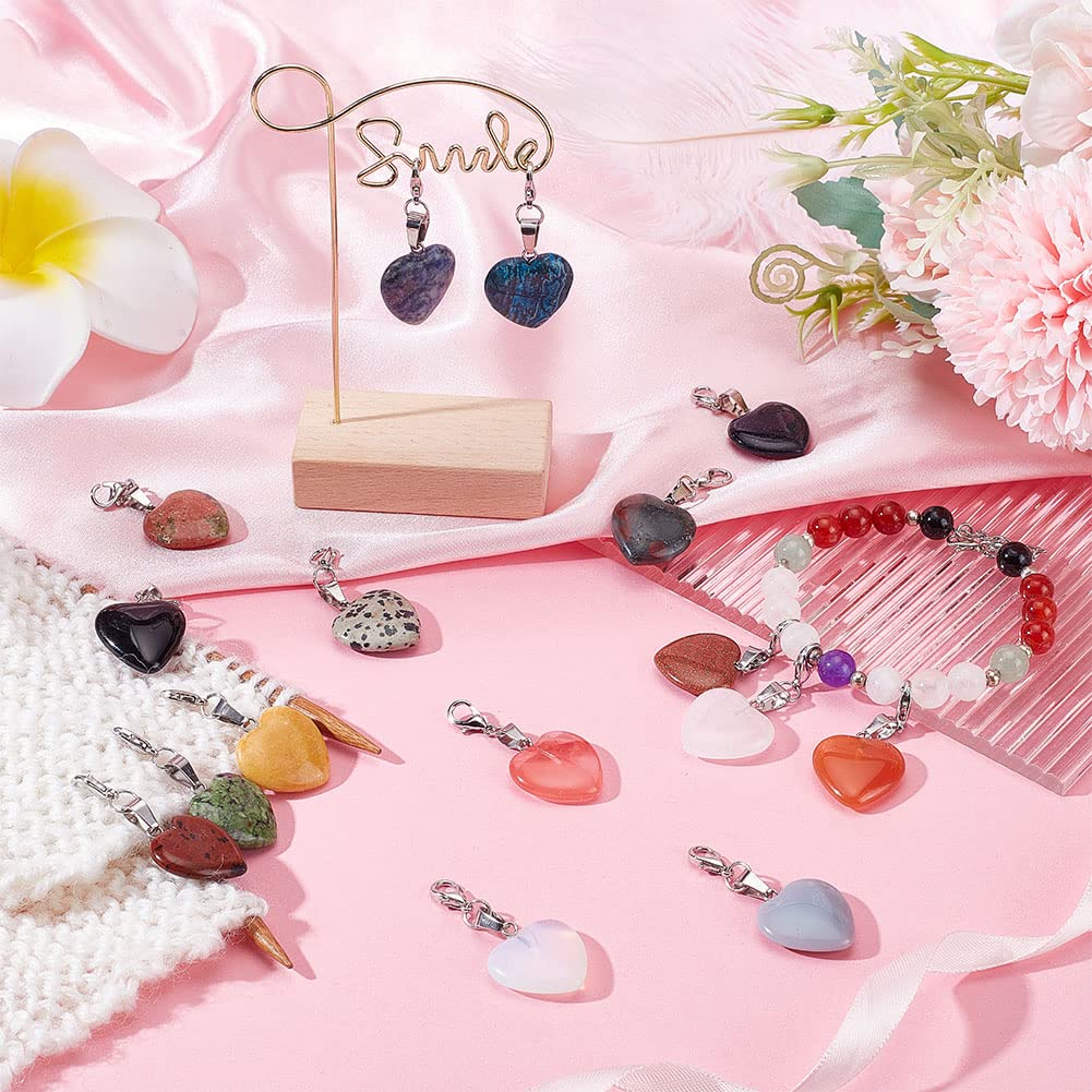 PH PandaHall Heart Stone Charms 16pcs Love Heart Pendants Valentine Charms Quartz Gemstone Chakra Stone Charm Pendants with Lobster Claw Clasps for Valentine Mother Wedding Necklace Jewelry Making
