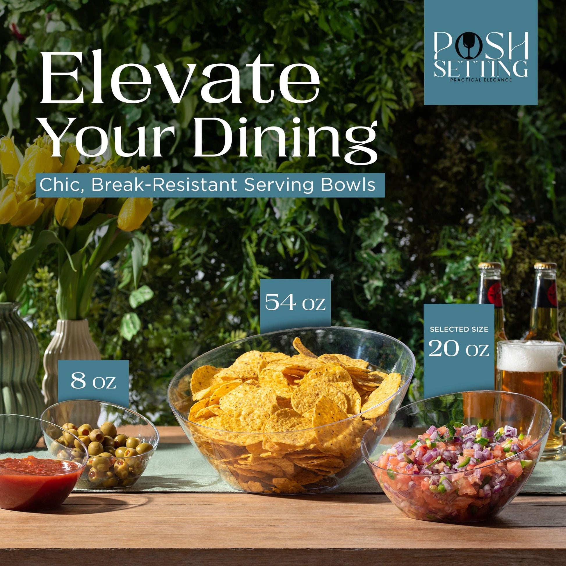 Posh Setting Crystal Clear, Disposable Premium Hard Plastic Medium Angled Bowl, Party, Salad, Snack and Fruit Bowl 5 Pack