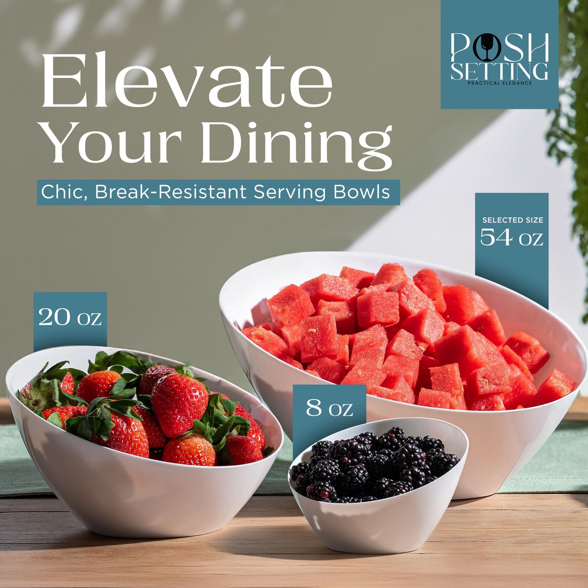 Posh Setting - White Plastic Serving Bowls for Party - Angled, Disposable, Chip & Candy Bowls - 54 OZ, 5 Pack