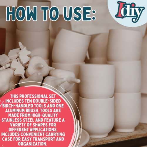 Details: Sculpt Pro Pottery Tool Starter Kit - 11-Piece 21-Tool Beginner's Clay Sculpting Set - Free Carrying Case Included: This professional set includes ten double-sided birch-handled tools and one aluminum brush.
