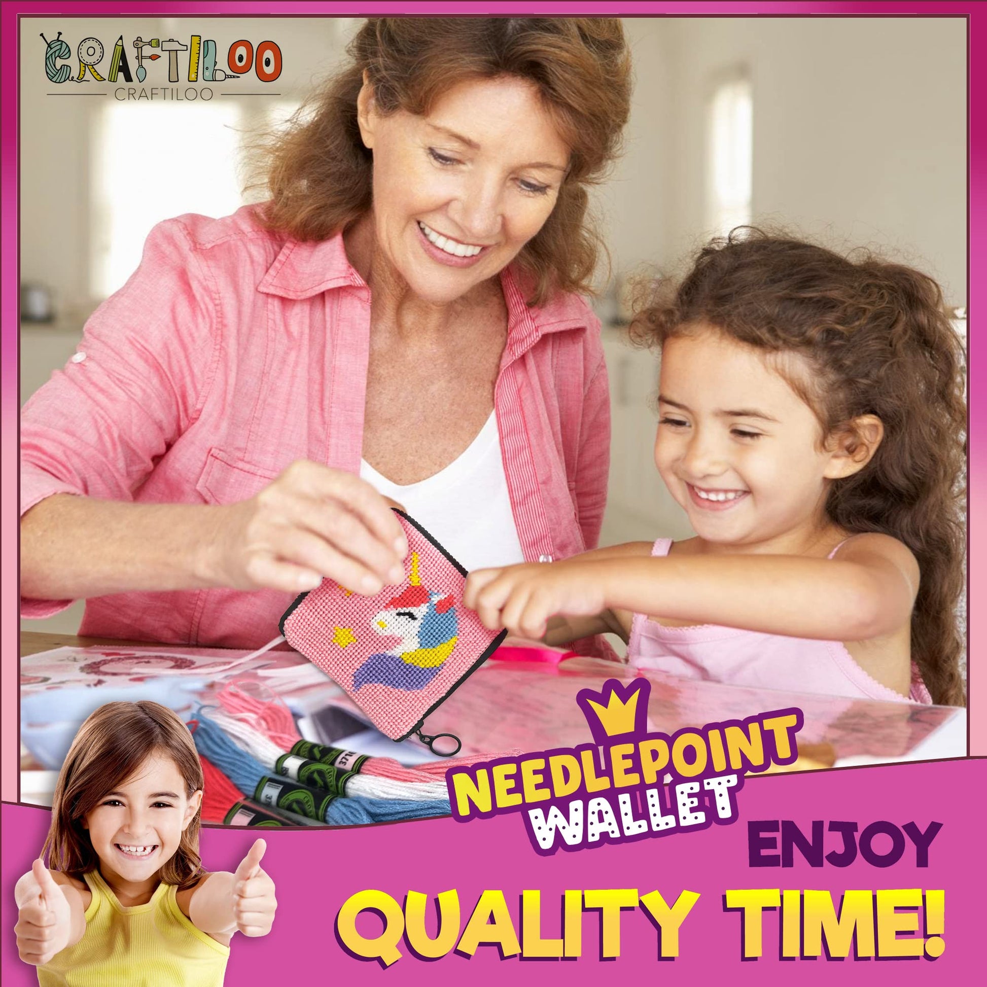 - CRAFT THAT KIDS WILL BE HAPPY TO DO:With this starter needlepoint kit your kid will actually be excited to create the beautiful pattern .Sewing is a useful and fun skill and the sense of accomplishments with the finished product will be worth the time spent , the wallet can later be used in daily life or as a precious handmade gift.
