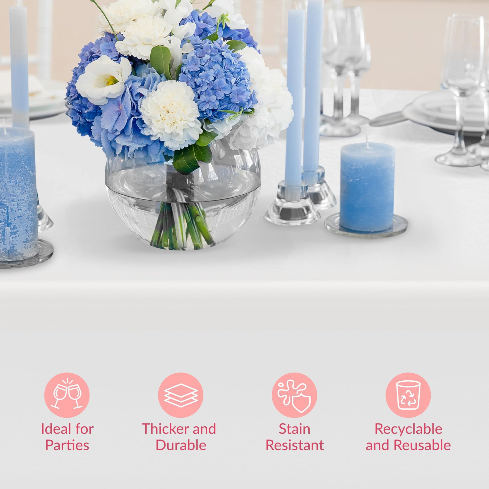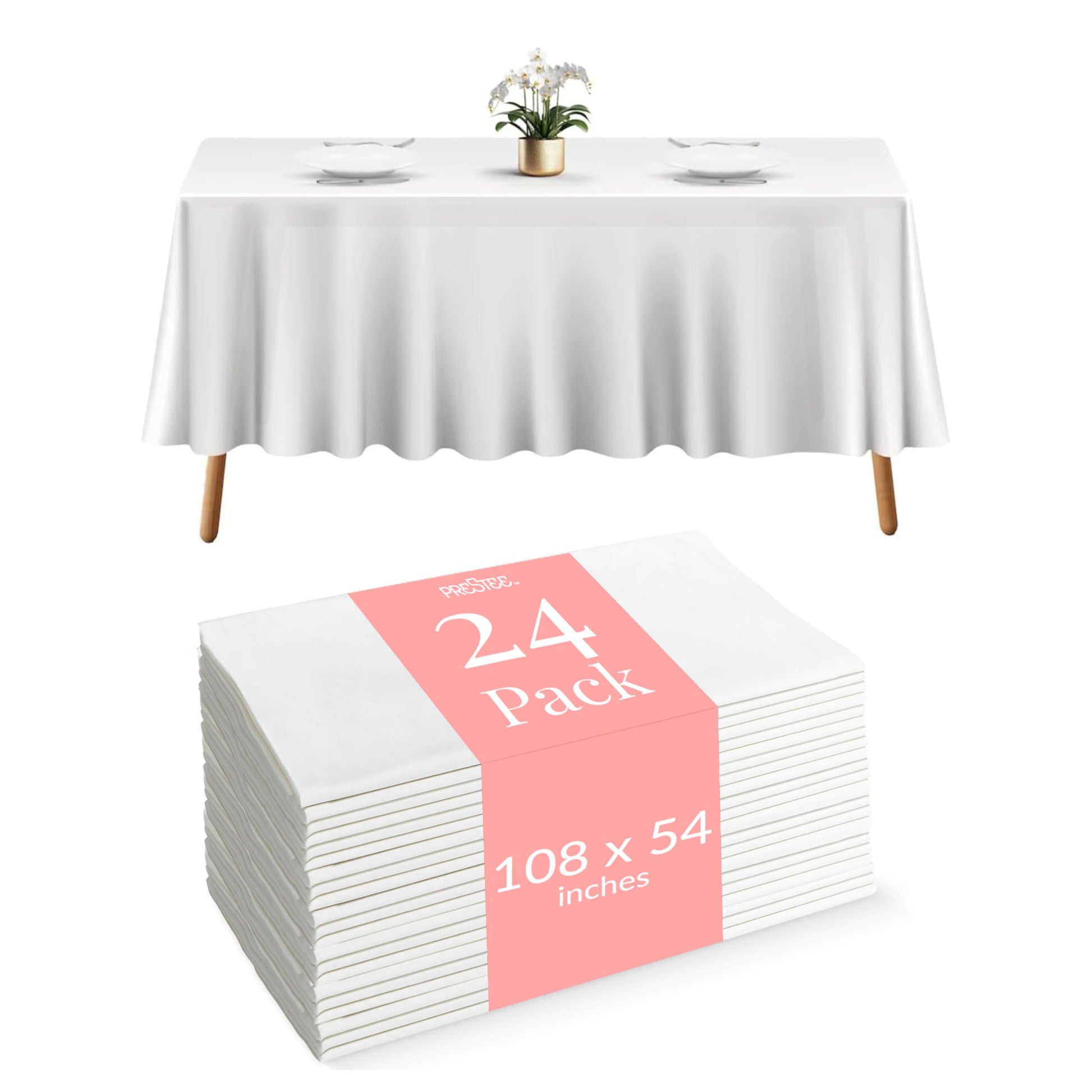 Prestee 24 Plastic Table Cloth Disposable - 108 x 54 White Tablecloth Rectangle - Plastic Table Cover for Parties, BBQs, Weddings, Outdoor Gatherings, and Fine Dining Events