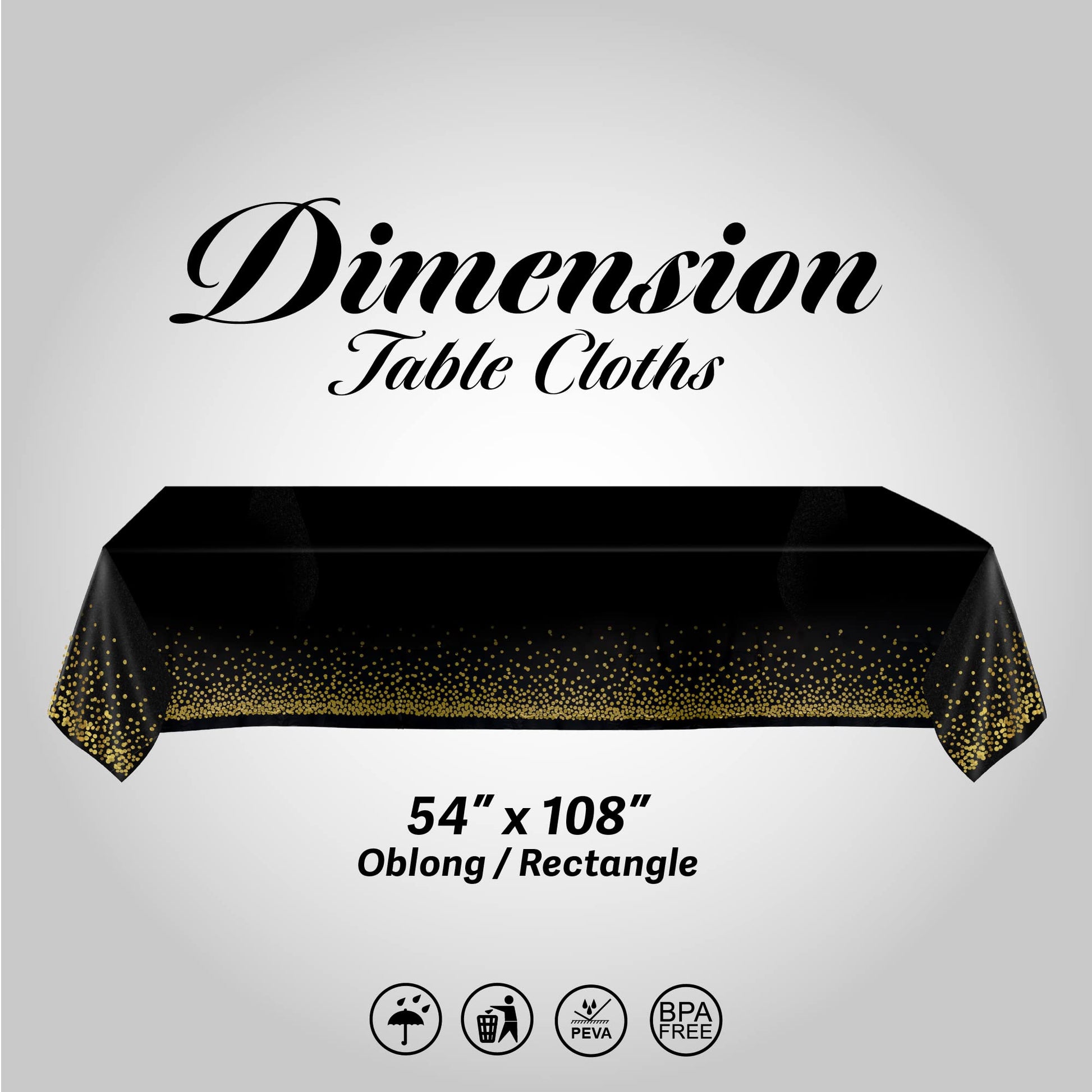 - WATERPROOF & STAIN-RESISTANT - Avoid the dry-cleaning costs of expensive linens - this black and gold plastic table cover is made from heavy-duty plastic that is 100% waterproof and stain-resistant but lighter and more eye-appealing than vinyl tablecloth alternatives.