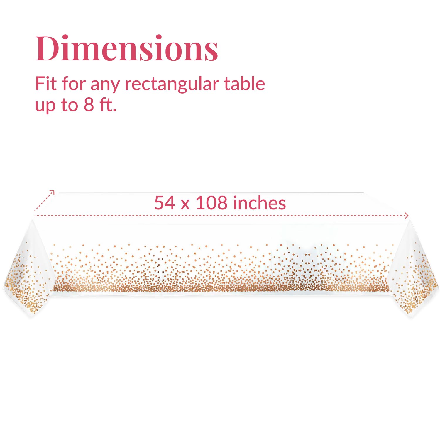 - Versatile and Recyclable: Each of these rectangle table cloths pink and gold measures 54 x 108 inches, fitting tables up to 8 ft long; disposable and recyclable for convenient cleanup