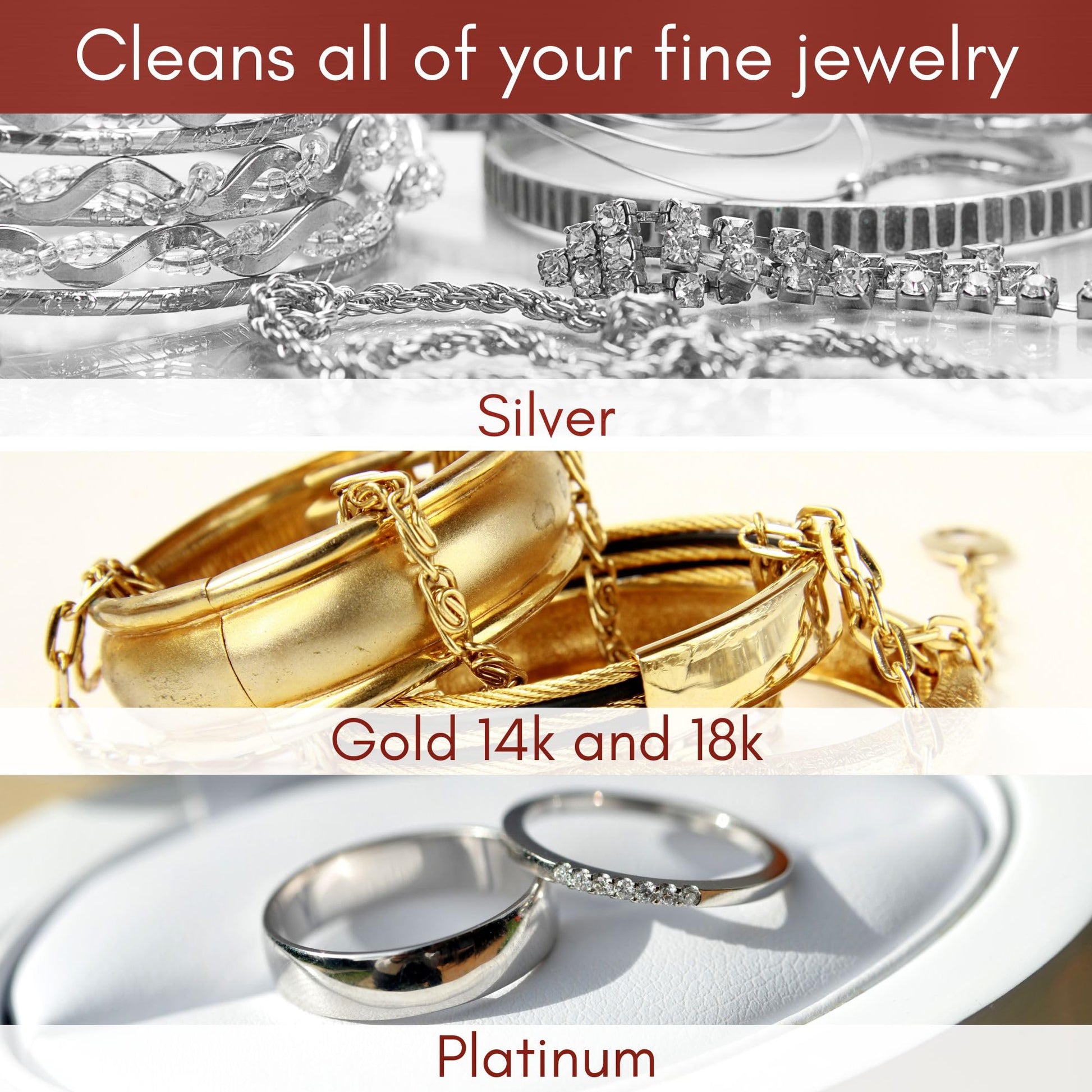 Polishing silver, gold and platinum is fast and easy with the two steps cleaning system:-White cloth impregnated with cleaning ingredients to polish the metal
