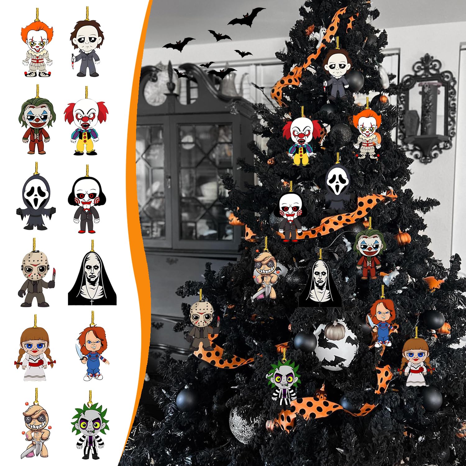 Halloween Tree Decoration - 12 Pcs Acrylic Pendant, Large Scary Movie Characters, Funny Cartoon Ornament