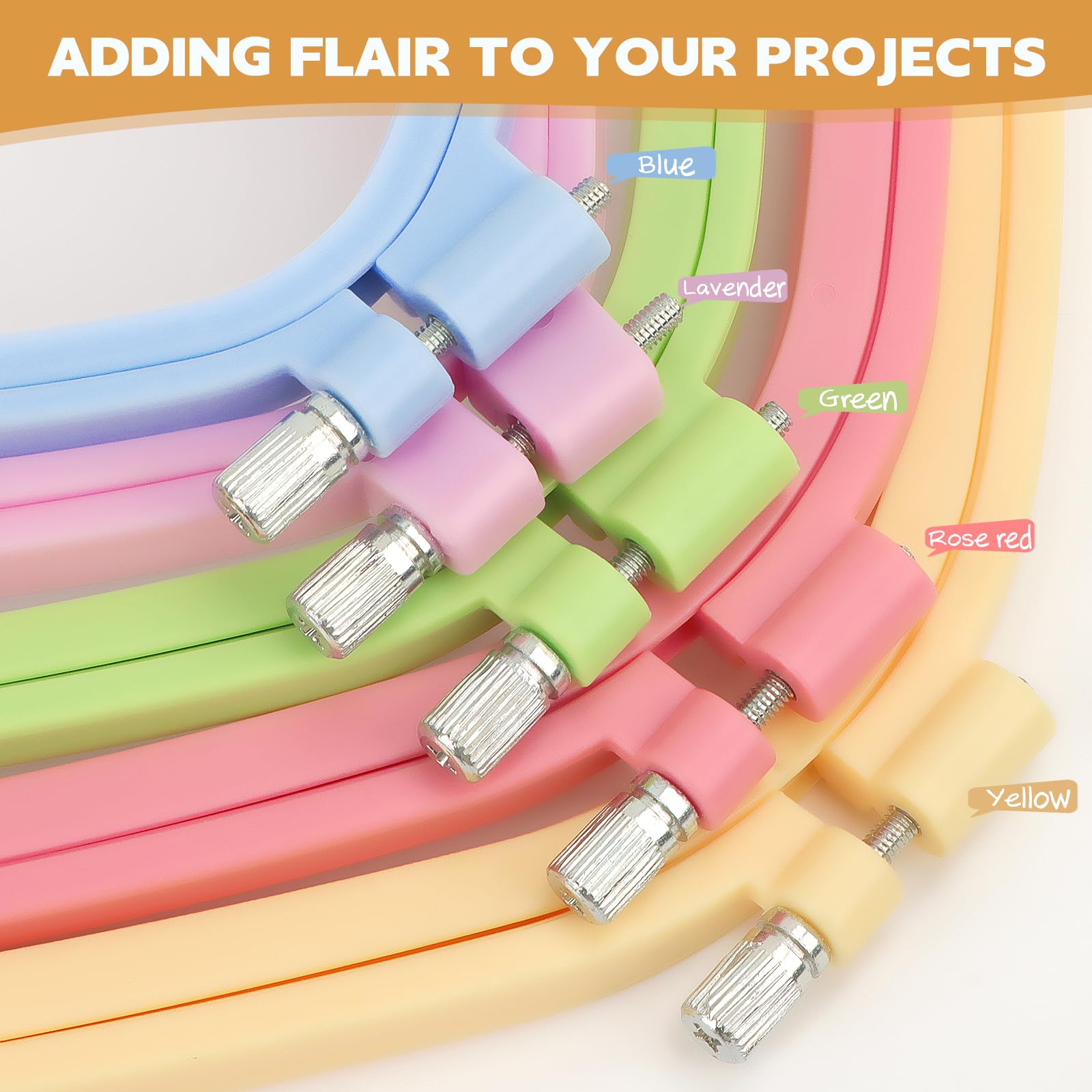 5 Pack ABS Rectangular Embroidery Hoops Set, Cross Stitch Hoops 5 Inch 6 Inch 10 Inch 12 Inch 15 Inch Plastic Candy Color Embroidery Hoop for DIY Embroidery Craft
