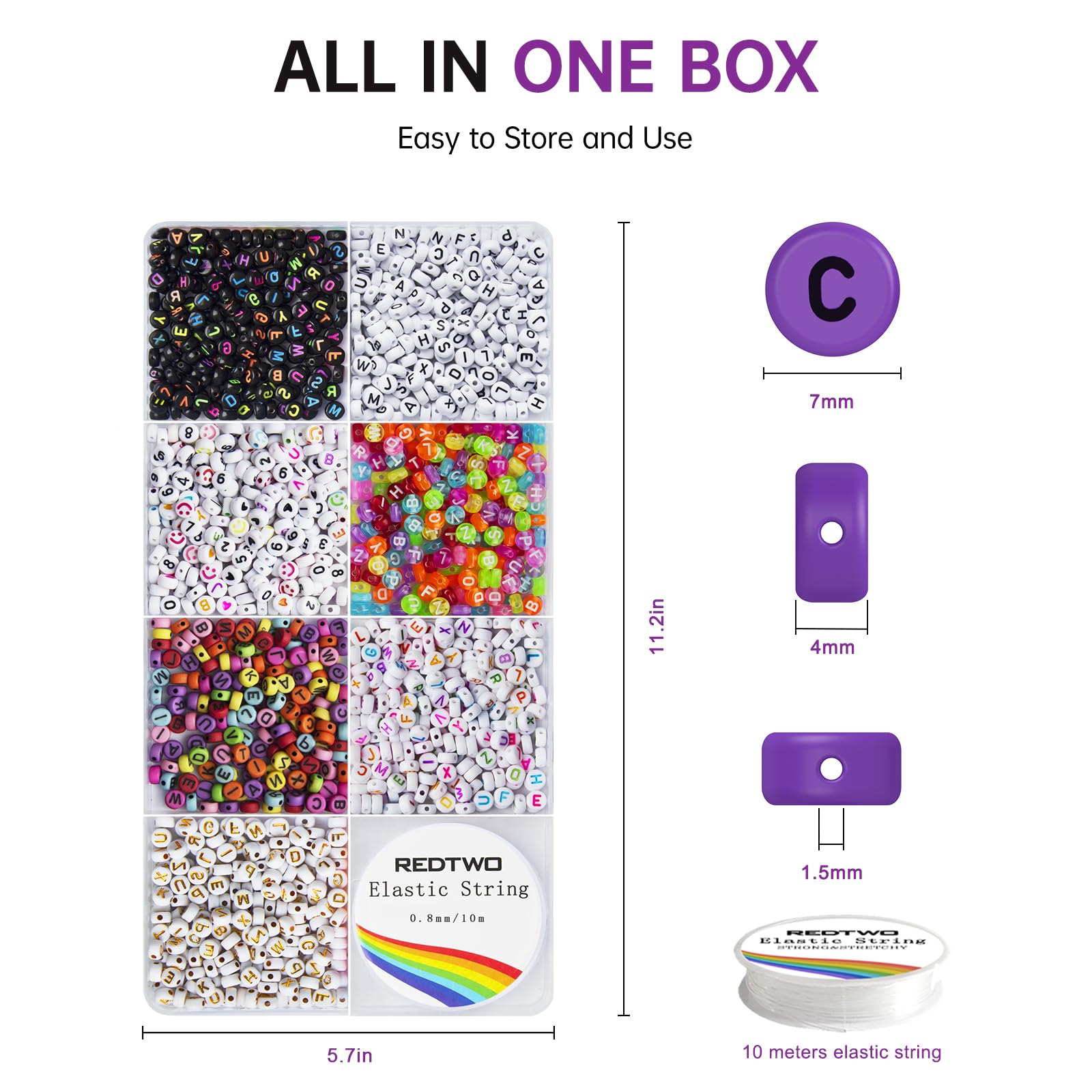 - ALL-IN-ONE LETTER BEADS SET: There are about 1600 Pcs letter beads for jewelry making inside the plastic box, which contains 6 different styles of circle letter beads, 230 Pcs each, 130 Pcs number beads, 30 Pcs happy face beads, 30 Pcs black heart beads, 30 Pcs colored heart beads, and a roll of 10 meter elastic rope, to meet your needs for different bracelet making & jewelry making.