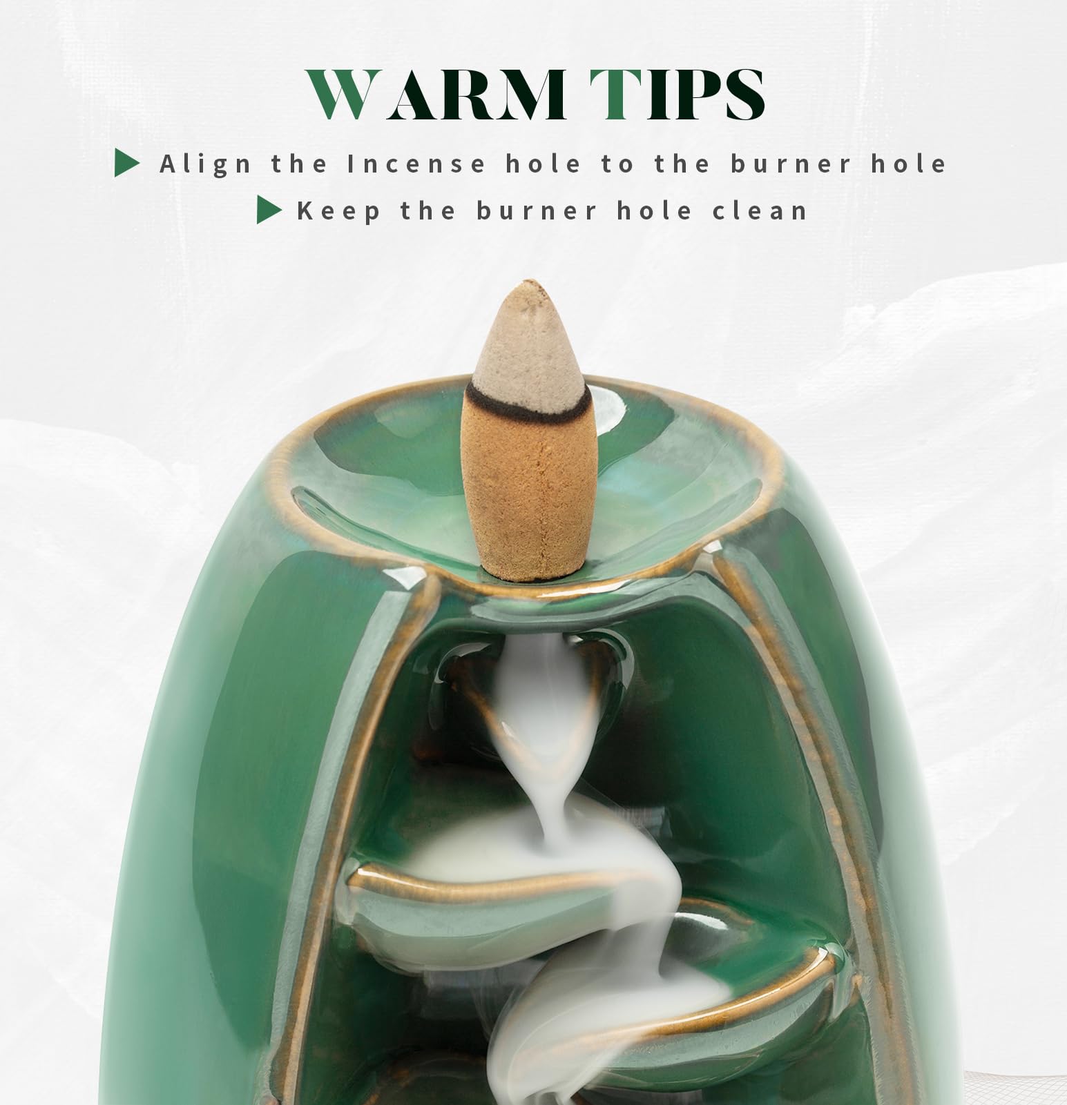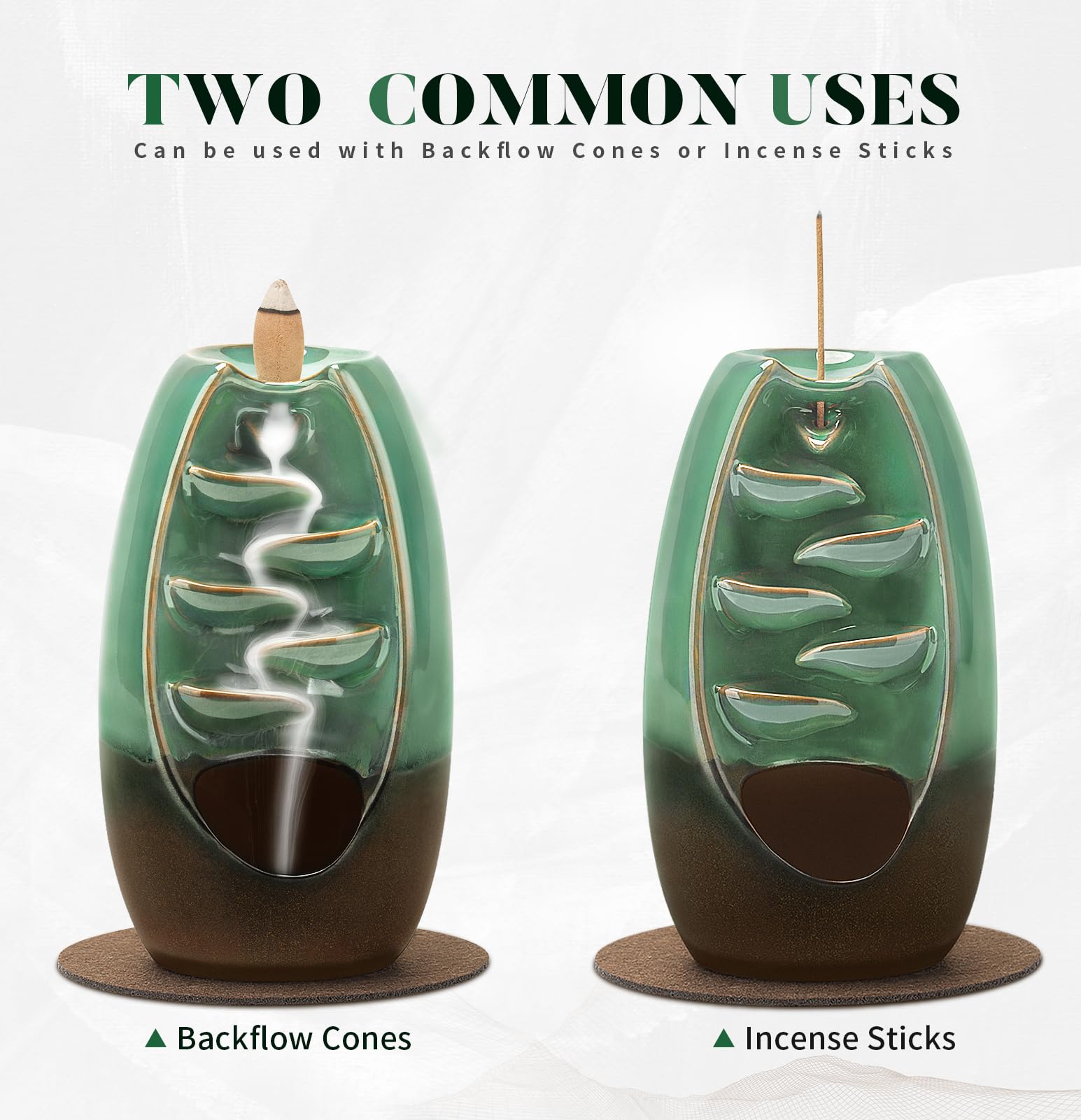 - 【Dual-Function Incense Burner】: This waterfall incense burner offers dual functionality, allowing you to use both incense cones and incense sticks. It's an economical way to cater to your diverse needs. When not in use, keep your incense cones and sticks sealed and stored in a cool, dry place
