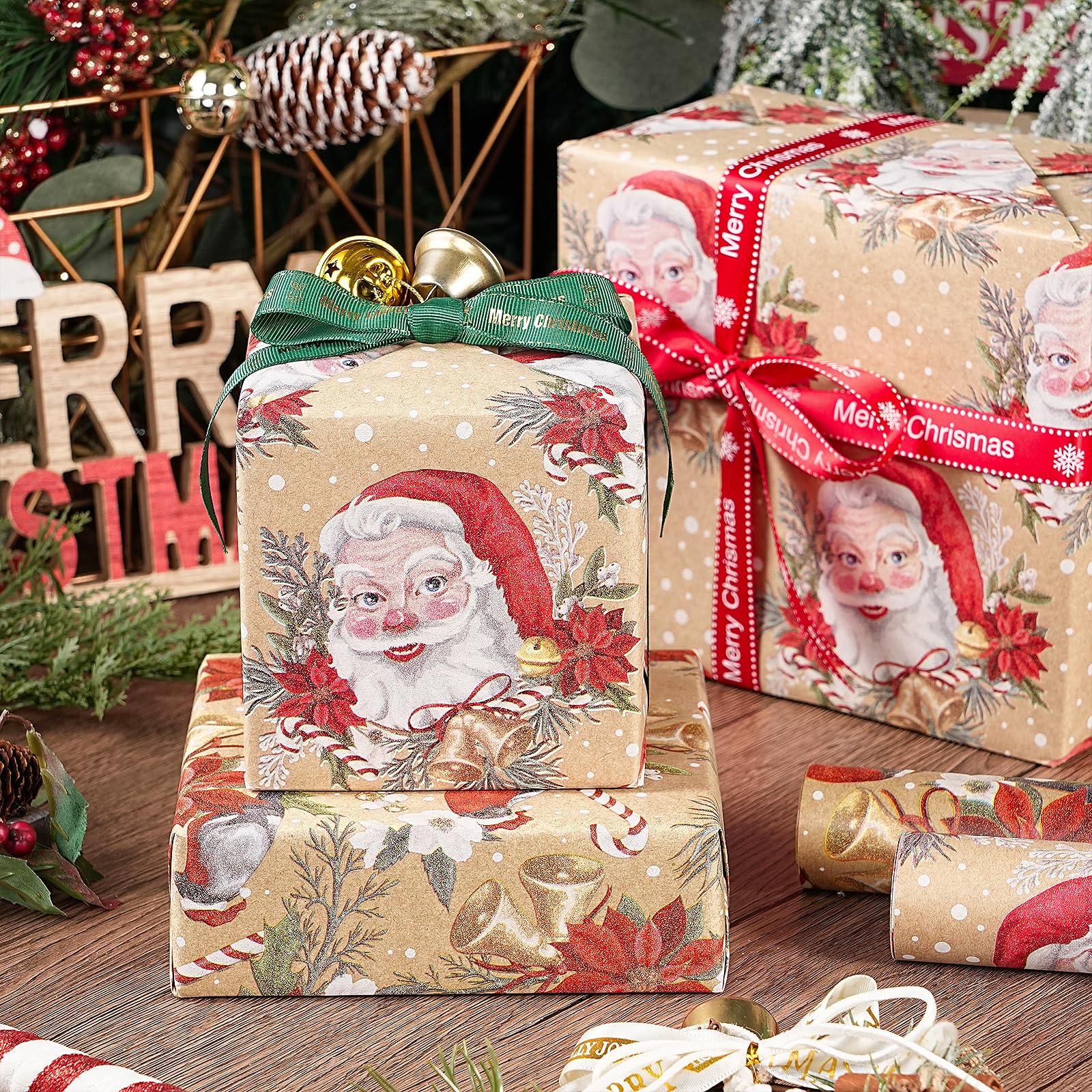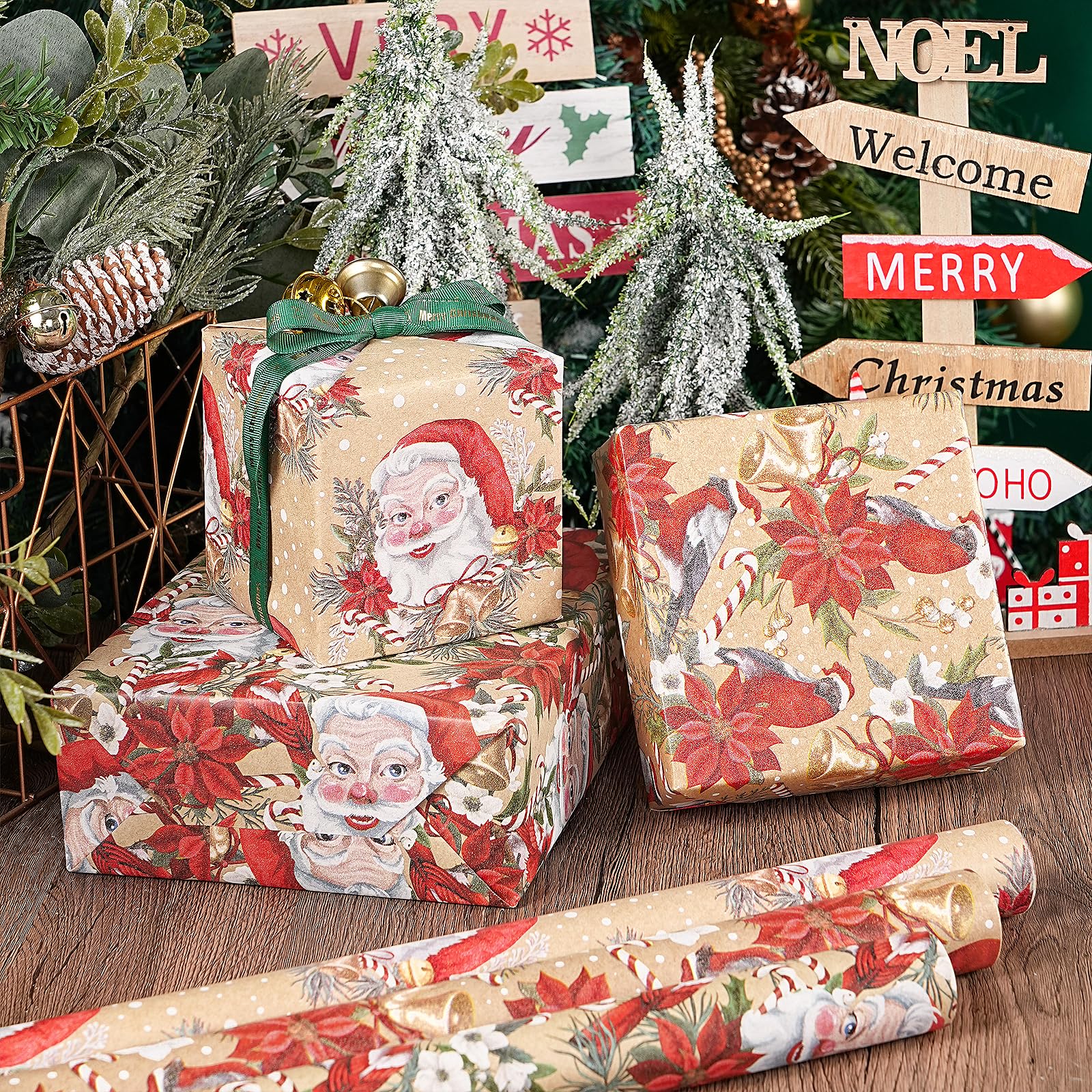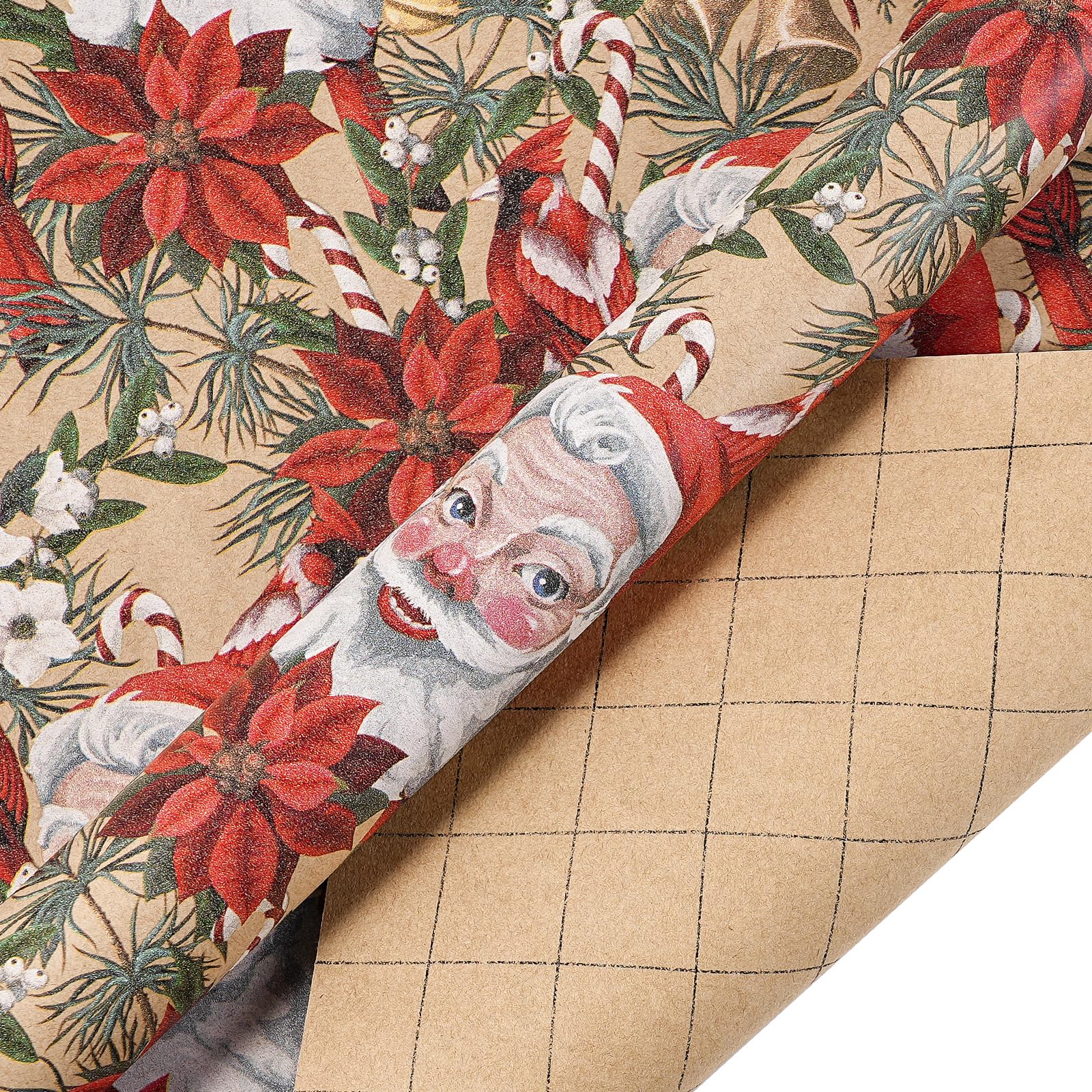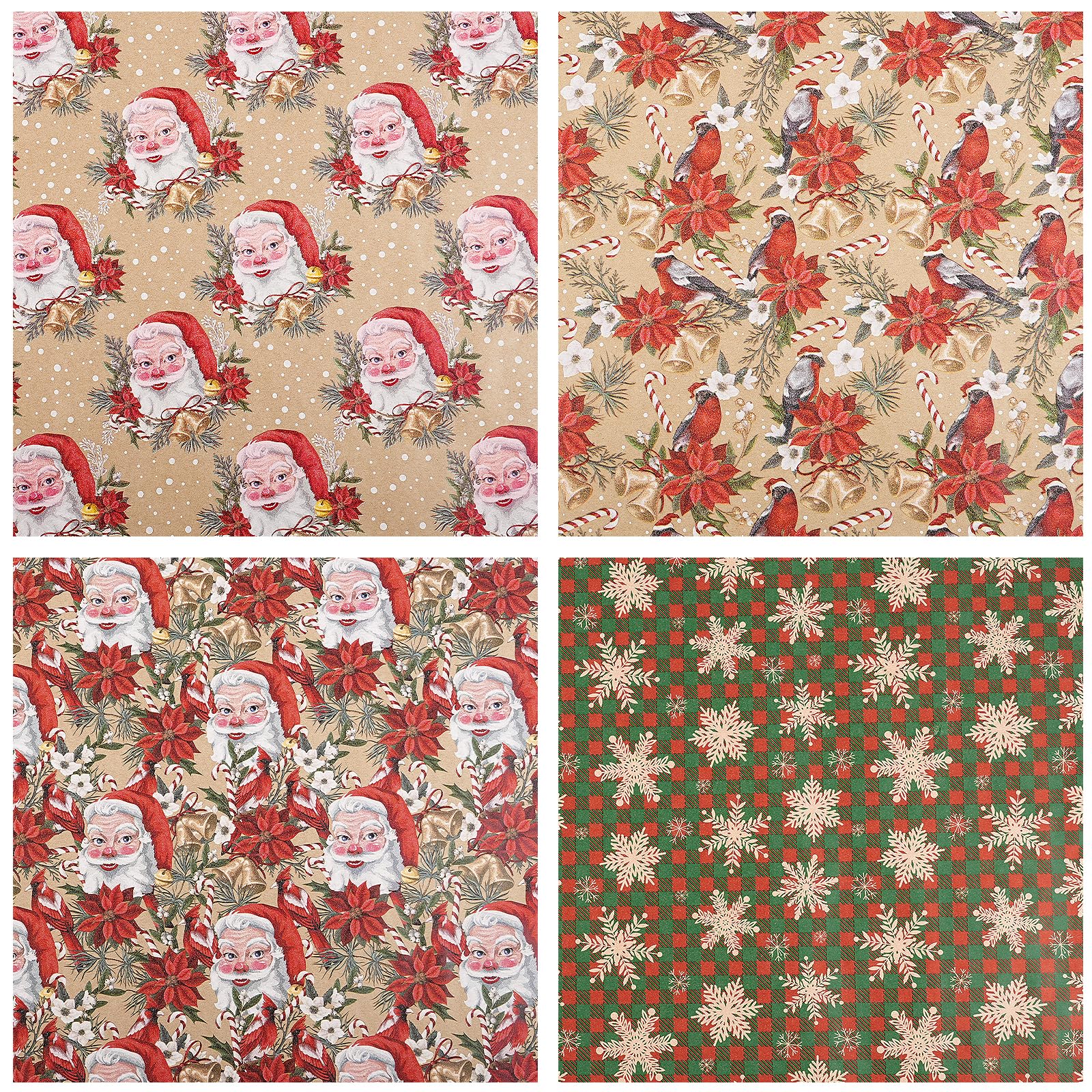 - Rustic Christmas Design: Celebrate the holiday season with four unique rustic designs, vintage Santa Claus portraits, poinsettias, holiday collages and a classic red-green plaid with gold snowflakes, all beautifully printed on kraft paper for an authentic and timeless feel.