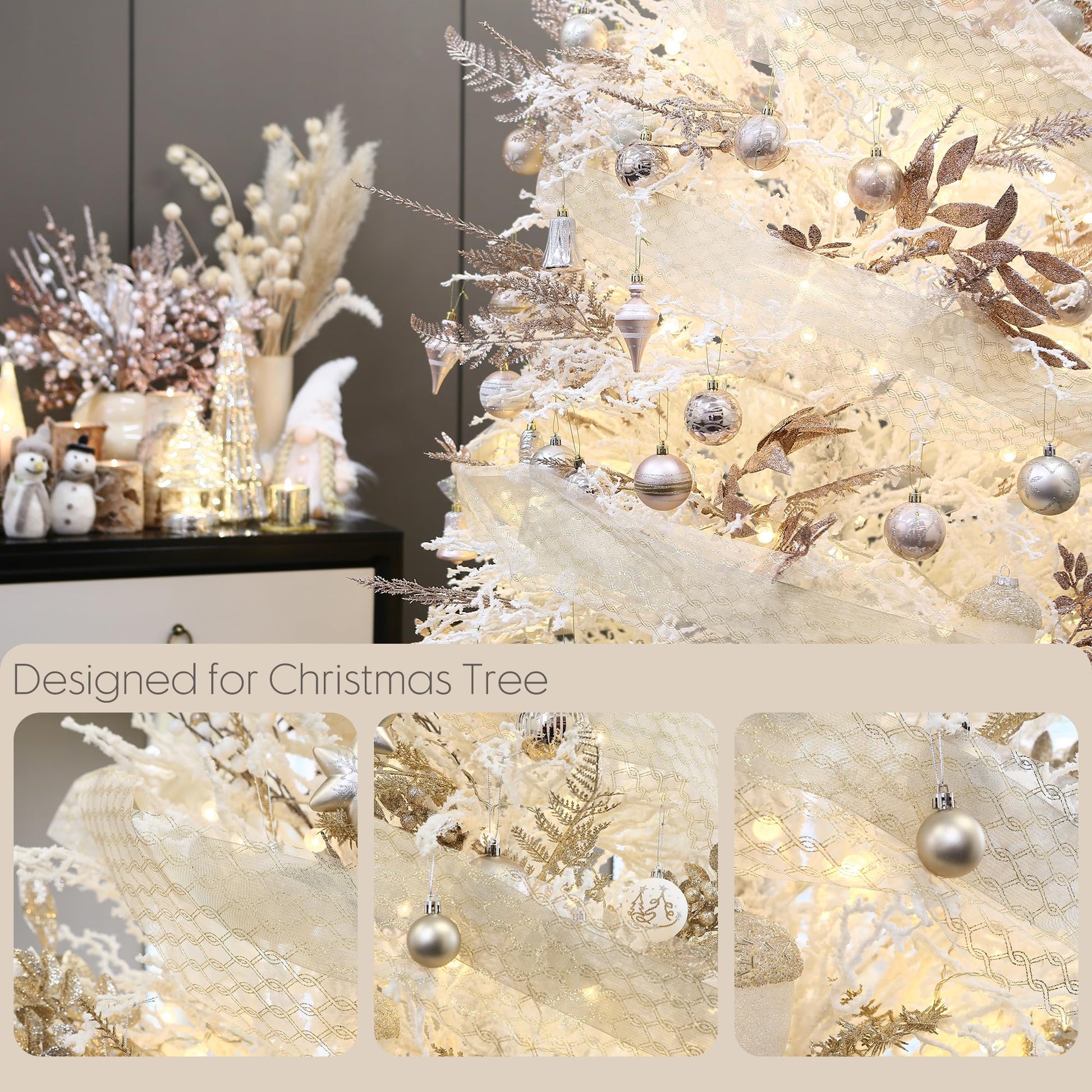 6-Inch-Wide Sheer Glitter Yarn Ribbon, Decorative Mesh Ribbon for Christmas Trees, Wreaths, Garlands, Art Crafts, Bouquets, Seasonal Decorations (3-Pack, 10-Yard/Pack, Champagne)