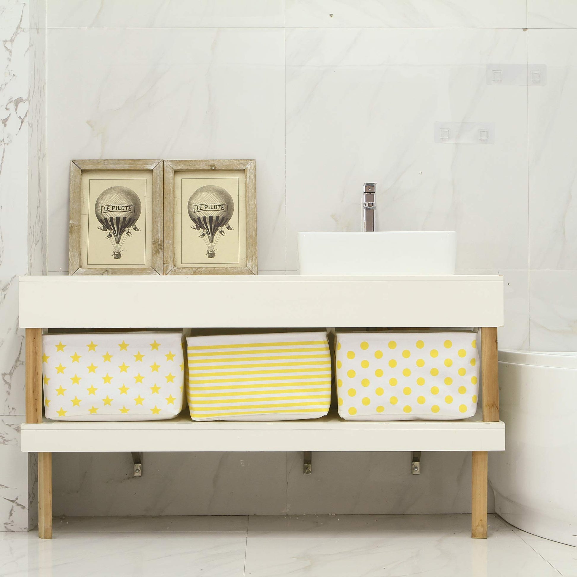 Sea Team Collapsible Canvas Fabric Storage Basket with Handles, Rectangle Waterproof Storage Bin, Box, Cube, Foldable Shelf Basket, Closet Organizer, 16.5 x 11.8 x 9.8 Inches, Yellow Stripe