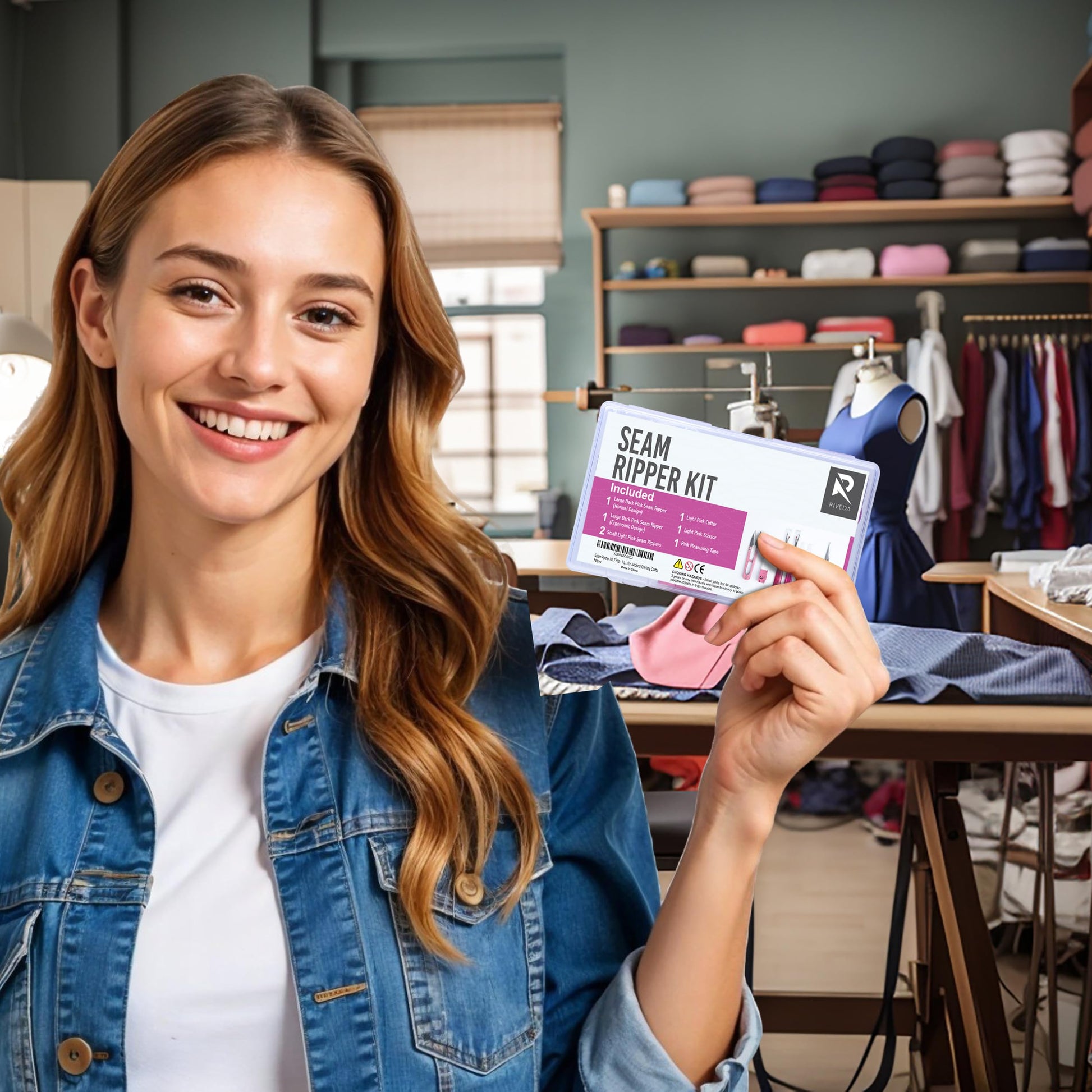 Seam Ripper Kit 7 Pcs - 1 Large, 1 Ergonomic, 2 Small Seam Rippers, Thread Cutter, Scissor, Measuring Tape - Sewing Accessories for Notions Quilting Crafts