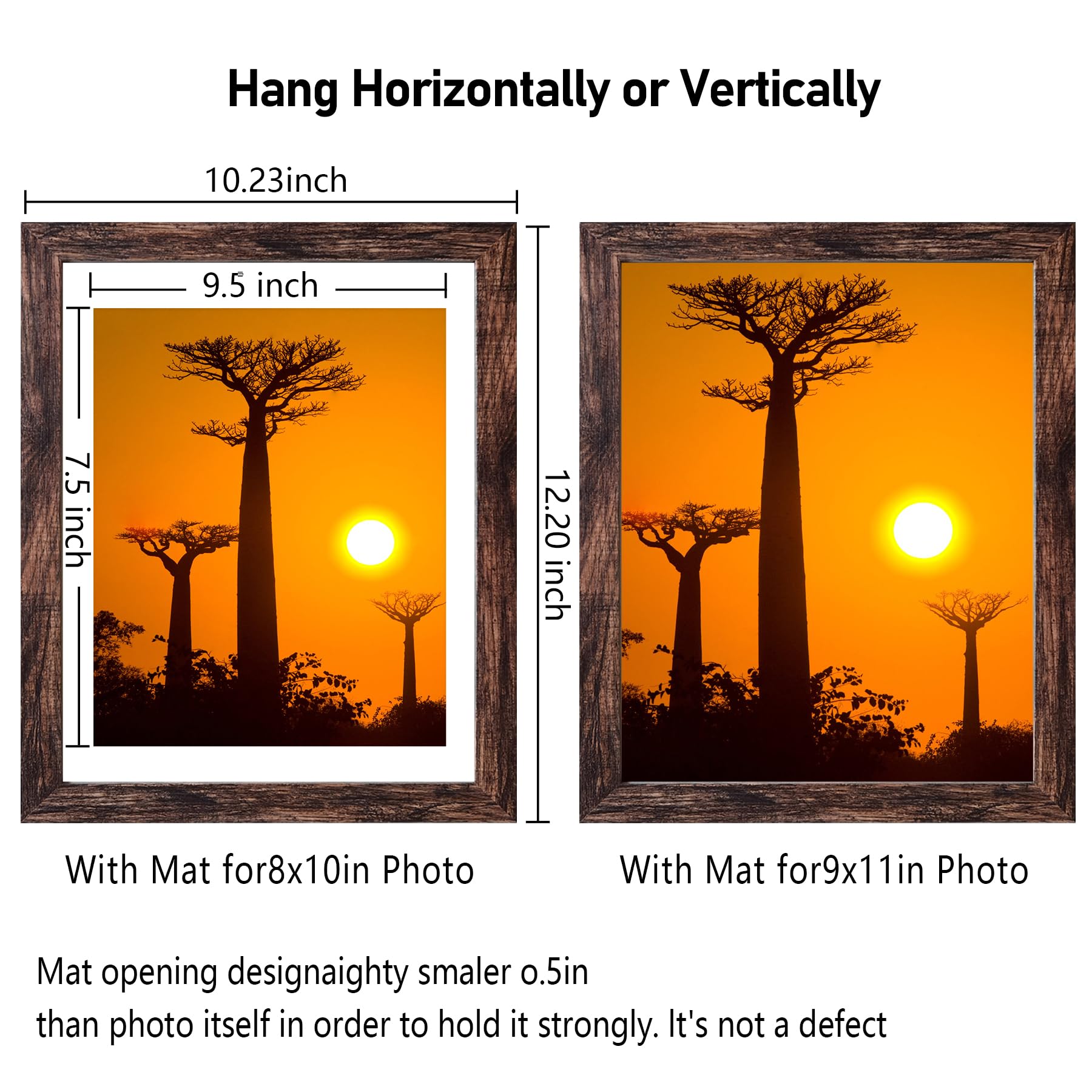 - 2 ways for displaying: You have the option of hanging the 8x10inch with mat or 9x11inch without mat frame longways or sideways or displaying your frames on the table horizontally or vertically, included necessary parts.