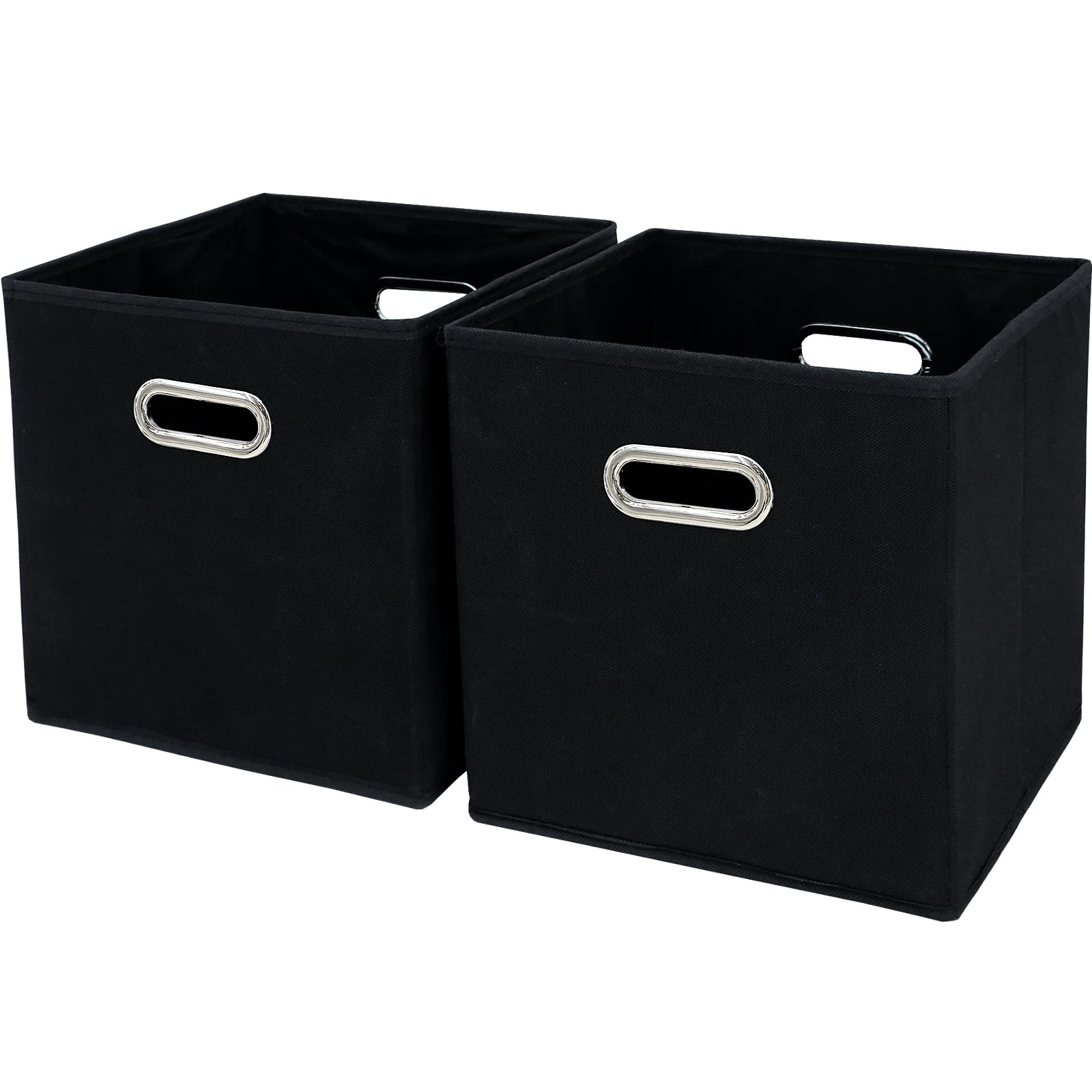 SEVENDOME Black Fabric Storage Bins Cube ,11x11x11 Fabric Cubby Organizer Baskets with Handle, Foldable Basket for Closet or Collapsible Storage Box Set of 2 (Black )