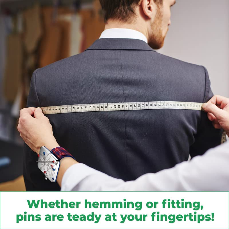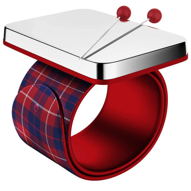 - PERFECT FIT FOR MEN & WOMEN – 9-inch magnetic bracelet is perfect for small to medium sized wrists and snaps into place for easy fitting; stylish and sleek red plaid band. It can also be hooked on to a lipped shelf for storage; styled with a modern chrome magnetic face to replace that old wrist pin cushion!