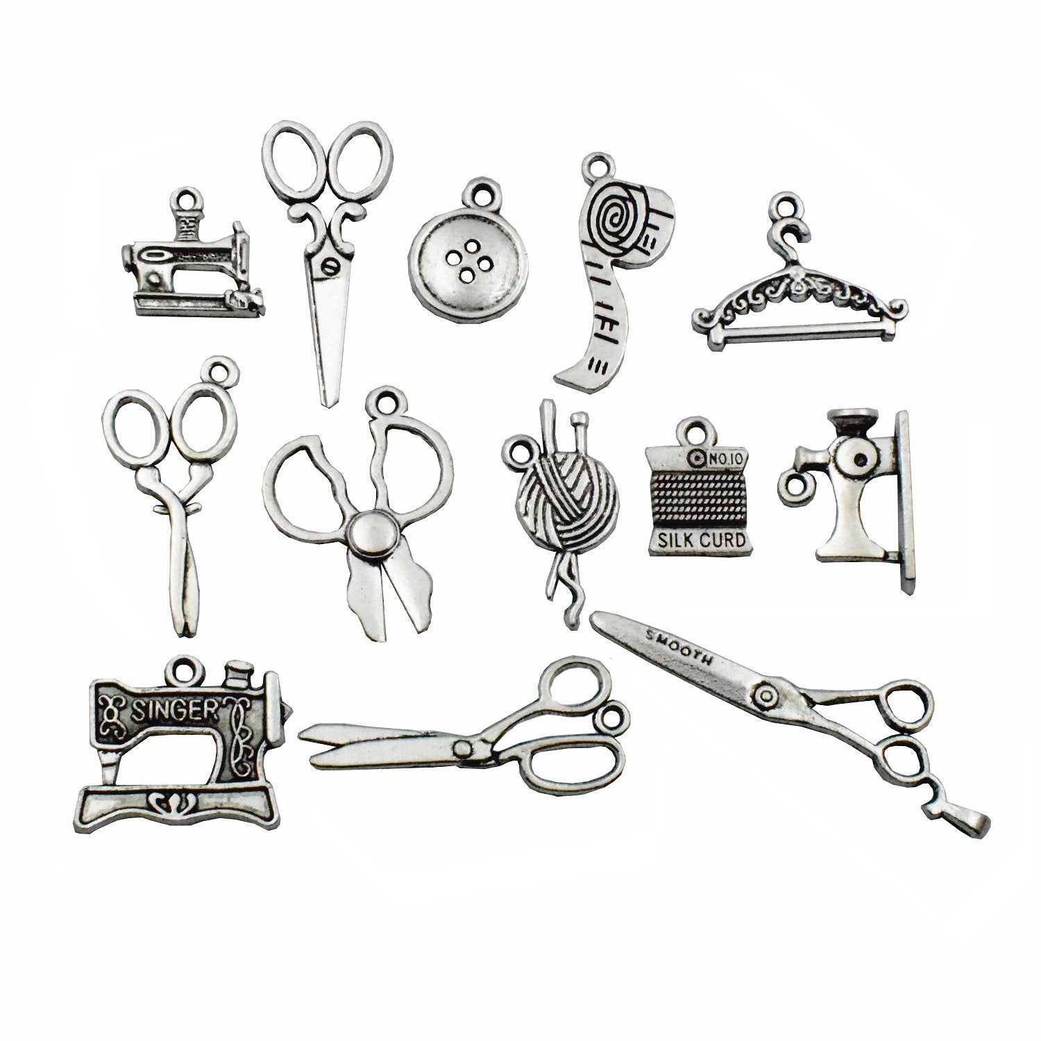 Sewing Charms Collection-100g About (60-65pcs) Antique Silver Craft Supplies Sewing Charms Pendants for Crafting, Jewelry Findings Making Accessory for DIY Necklace Bracelet (M003)