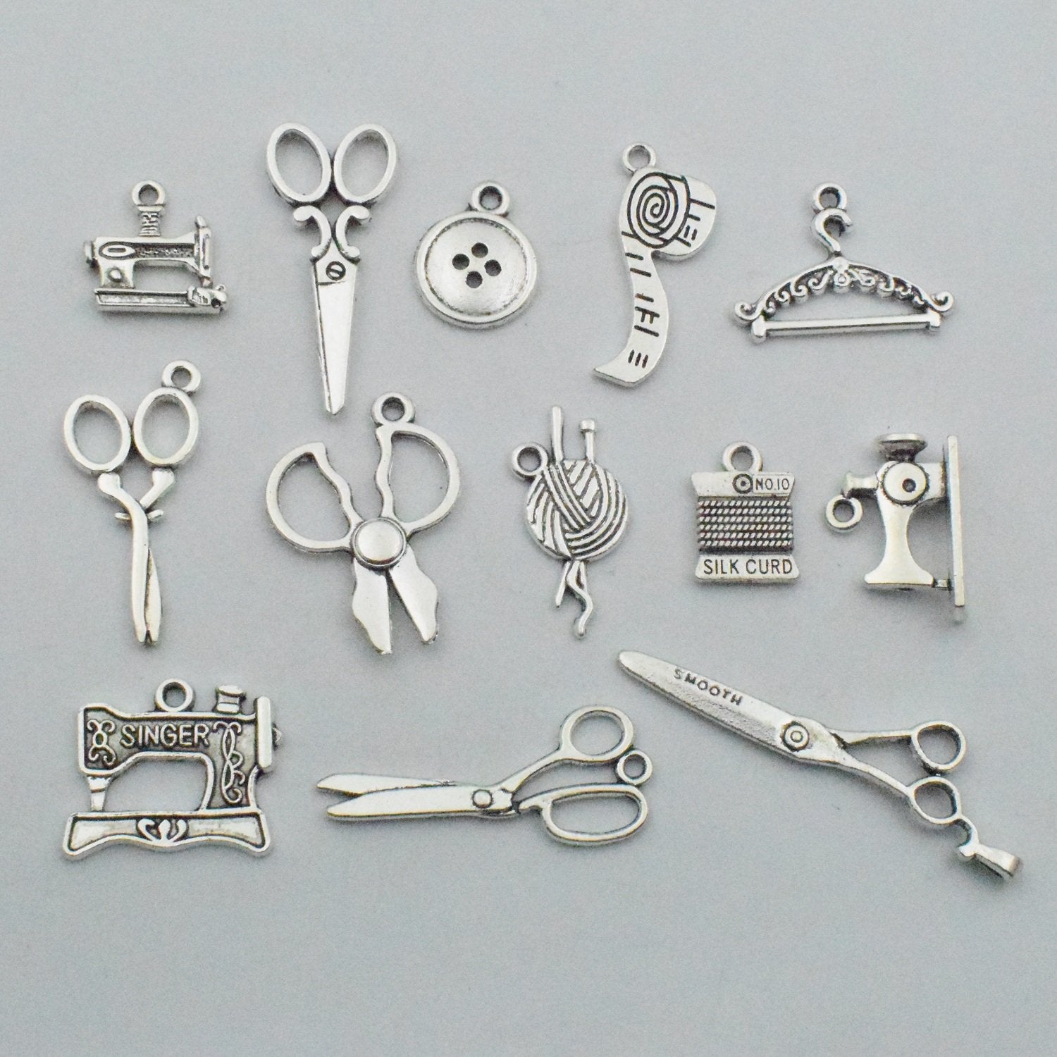 Details: This Sewing Charms Collection is a must-have for any jewelry maker or crafter. Weighing approximately 100g, this lot contains around 60-65 pieces of antique silver charms made of lead and nickel-free zinc alloy, perfect for creating unique and fashionable accessories. The charms range in size from 10-35mm, providing plenty of options for your projects. Each charm features a good cut, adding an extra touch of elegance to your designs. These charms are ideal for crafting, jewelry findings making, and accessorizing DIY necklaces and bracelets. The collection includes a variety of designs, such as sewing scissors, buttons, and other creative shapes, making it a versatile addition to your crafting supplies. With its mixed metal charms, this collection is a great value for your jewelry making needs.