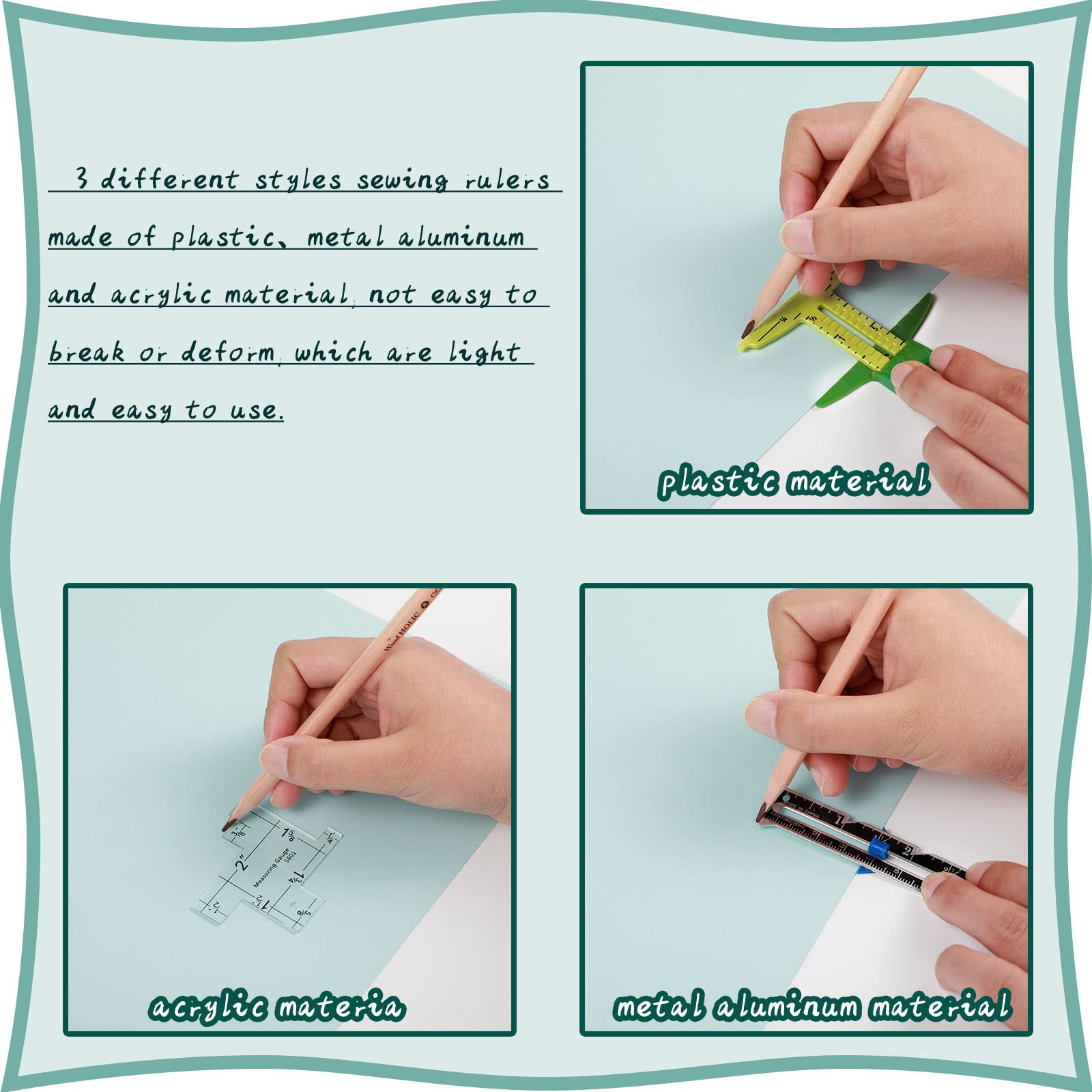 Sewing Gauge 3 Piece Seam Gauges for Sewing Fabric Hem Ruler T Shape Sewing Rulers 5 in 1 Sliding Gauge Sewing Tool for Knitting Crafting Sewing Beginner Supplies, 3 Styles