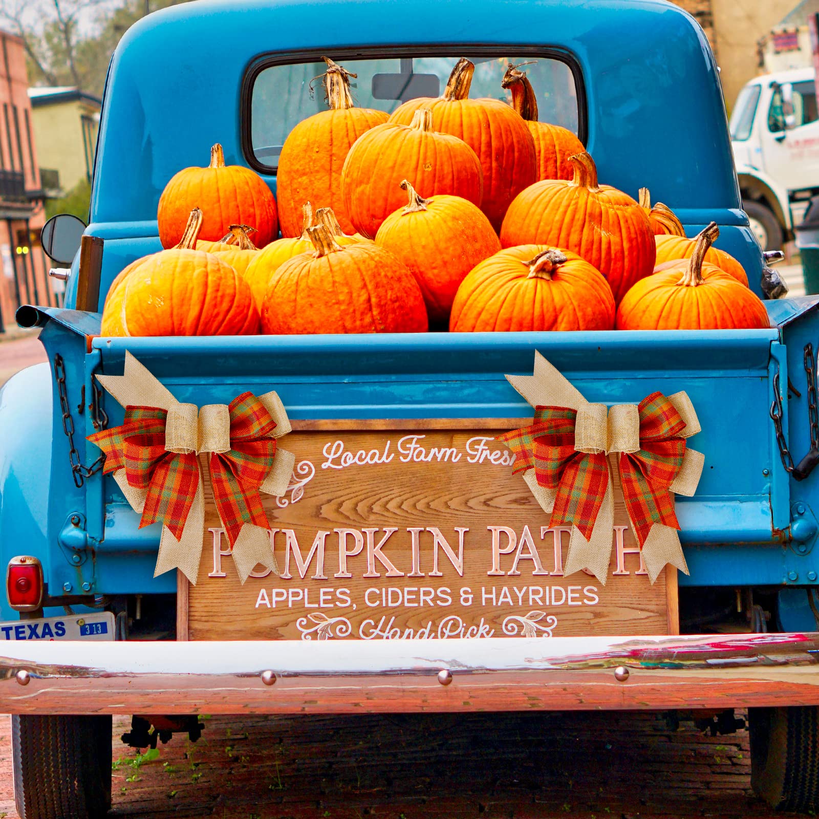 SIMISI RIBBON Fall Bows for Wreaths Orange Buffalo Plaid Burlap Bow for Thanksgiving Tree Topper, Home Indoor Outdoor Decorations (9.5 x 13 inch)