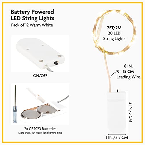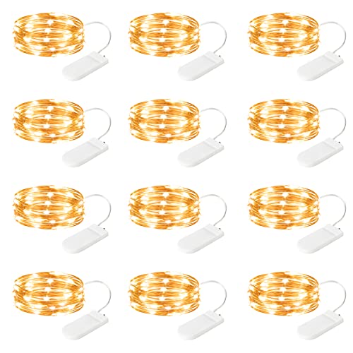 SINAMER 12 Pack Fairy Lights Battery Operated String Lights, 7ft 20 Led Waterproof Copper Wire Firefly Starry for DIY Wedding Party Bedroom Christmas (Warm White)